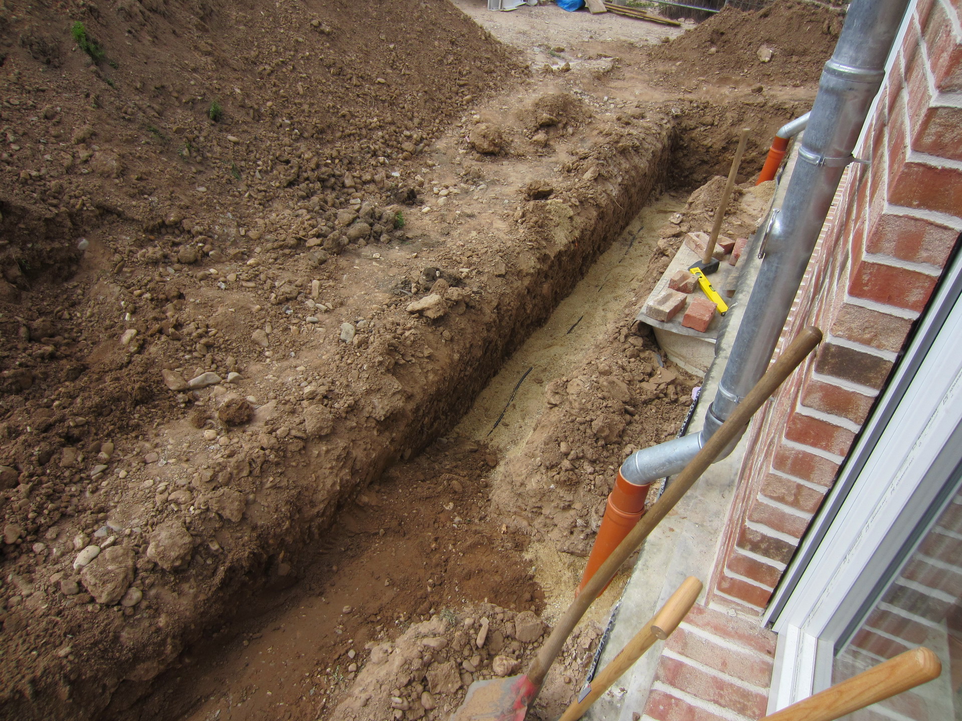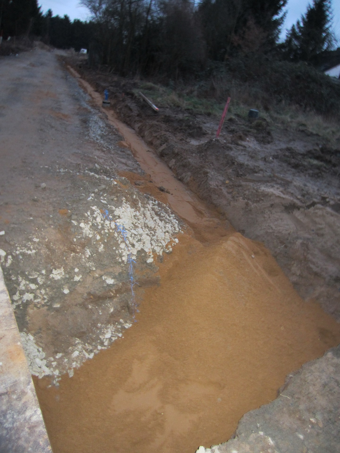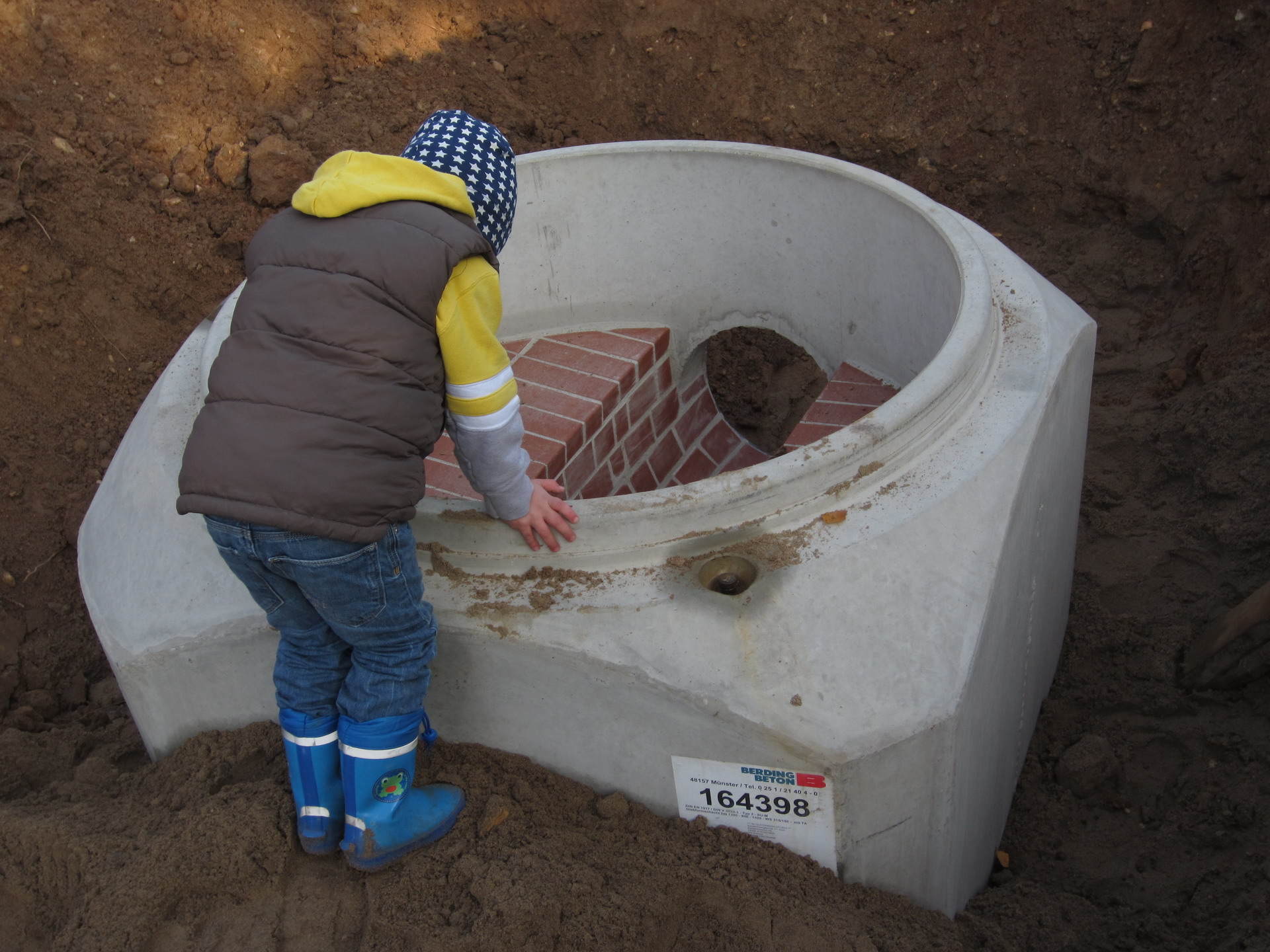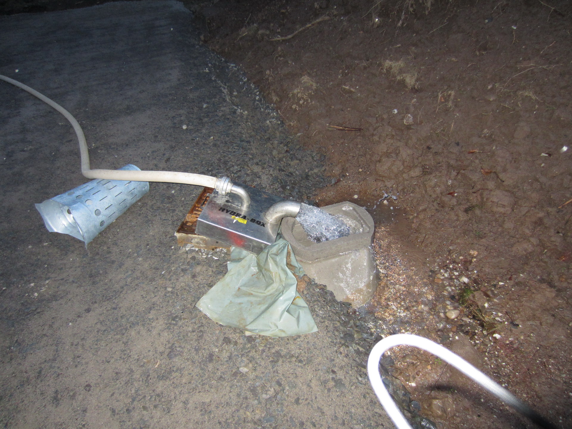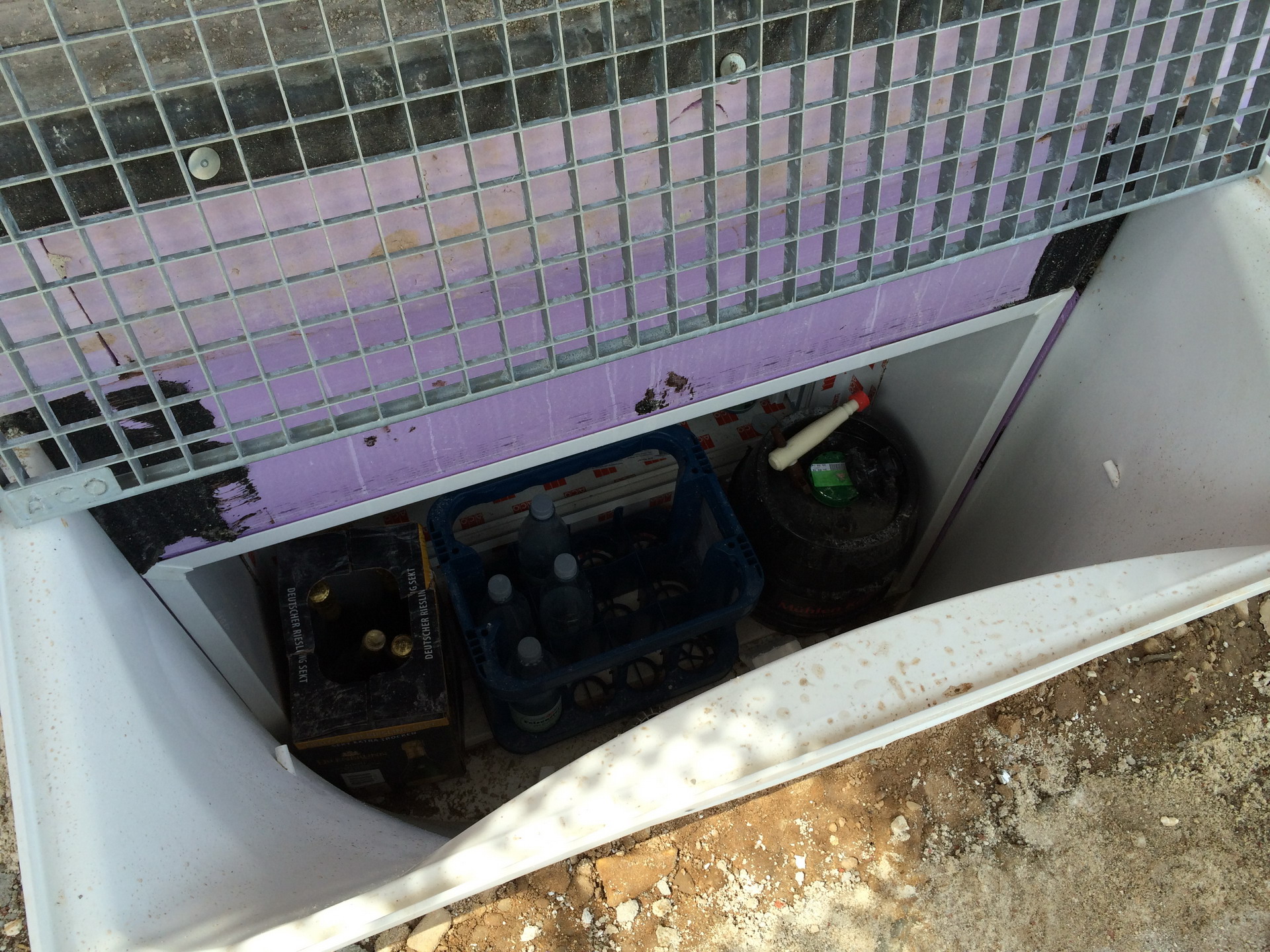 …ein Ablauftest ist erfolgreich. Wasser versickert zw. Kellerdämmung und Erdreich.