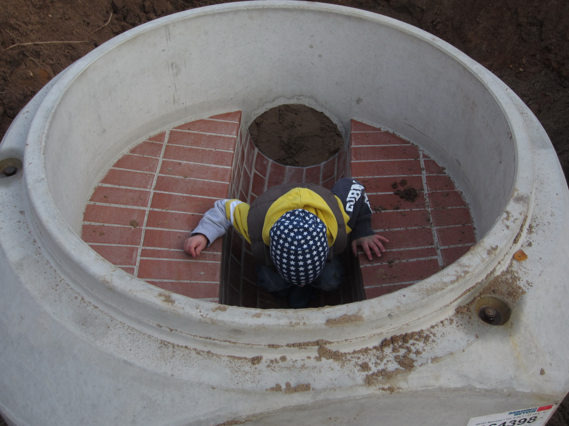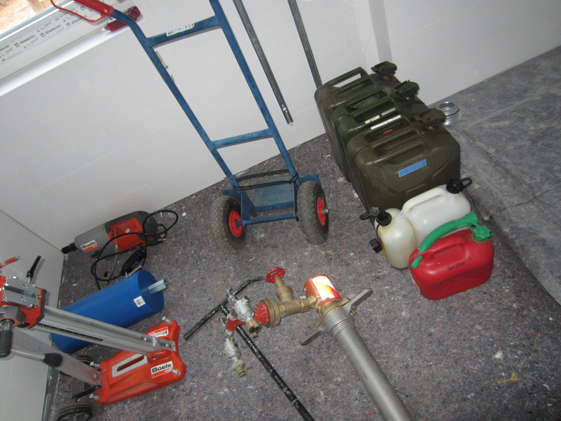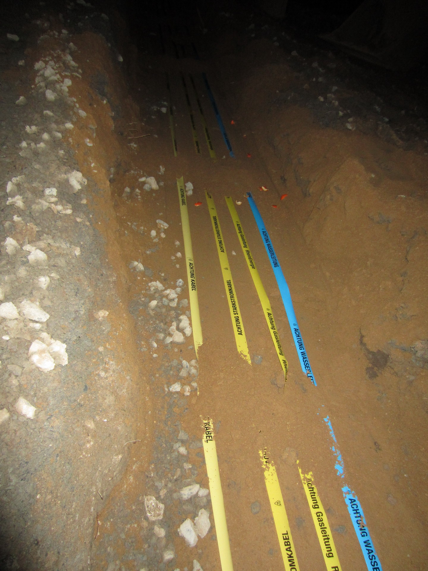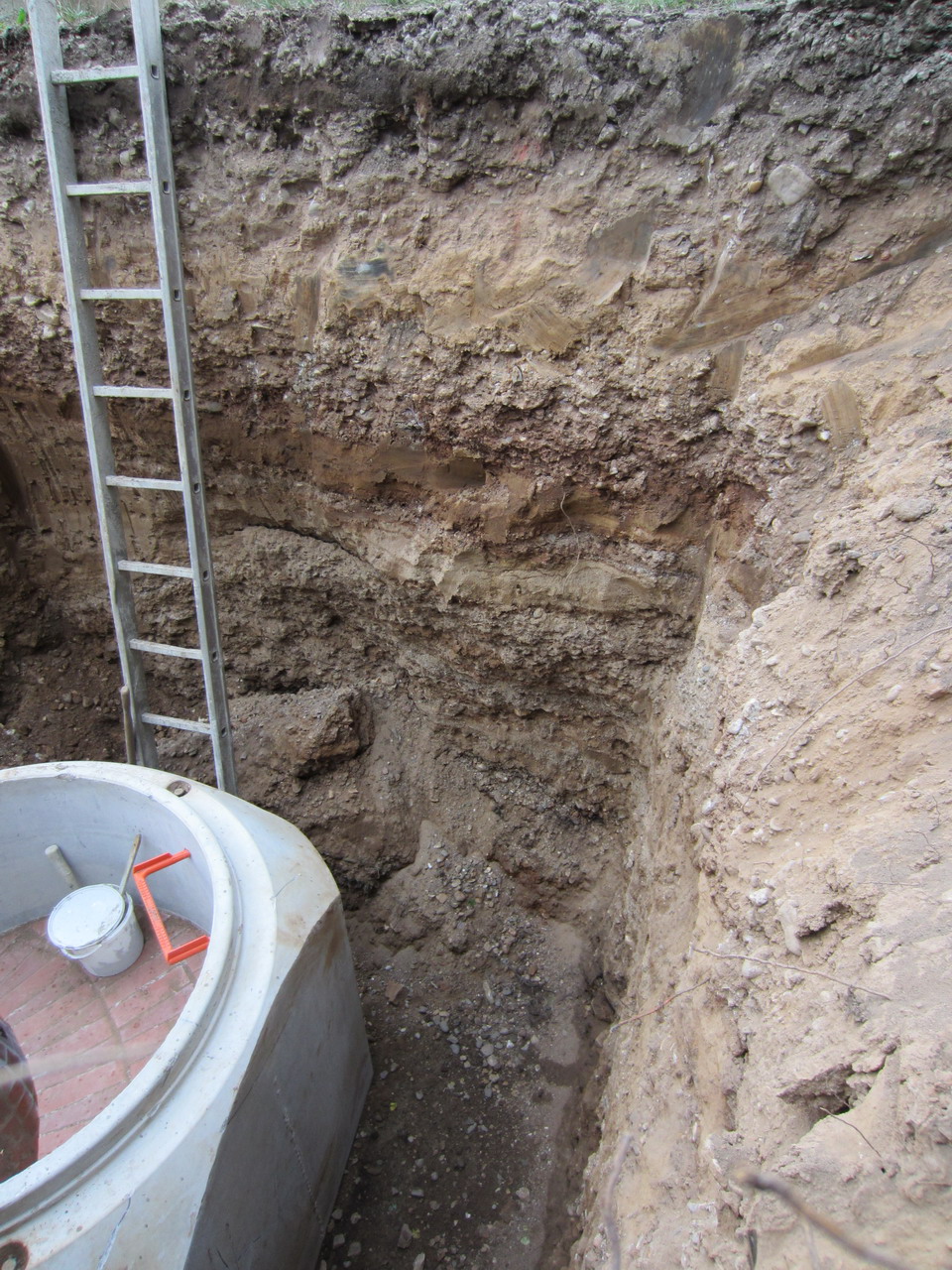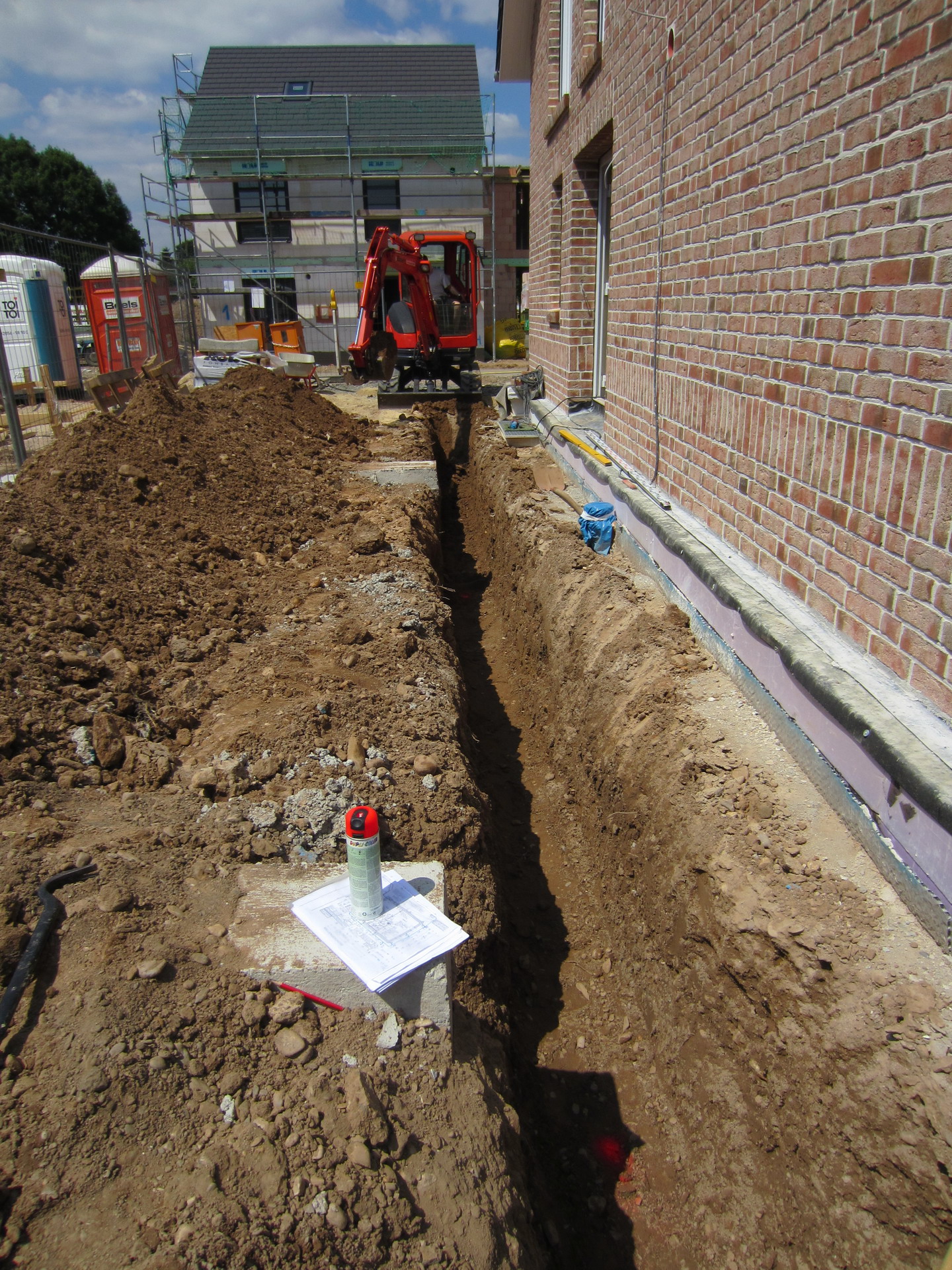 …ein Ablauftest ist erfolgreich. Wasser versickert zw. Kellerdämmung und Erdreich.