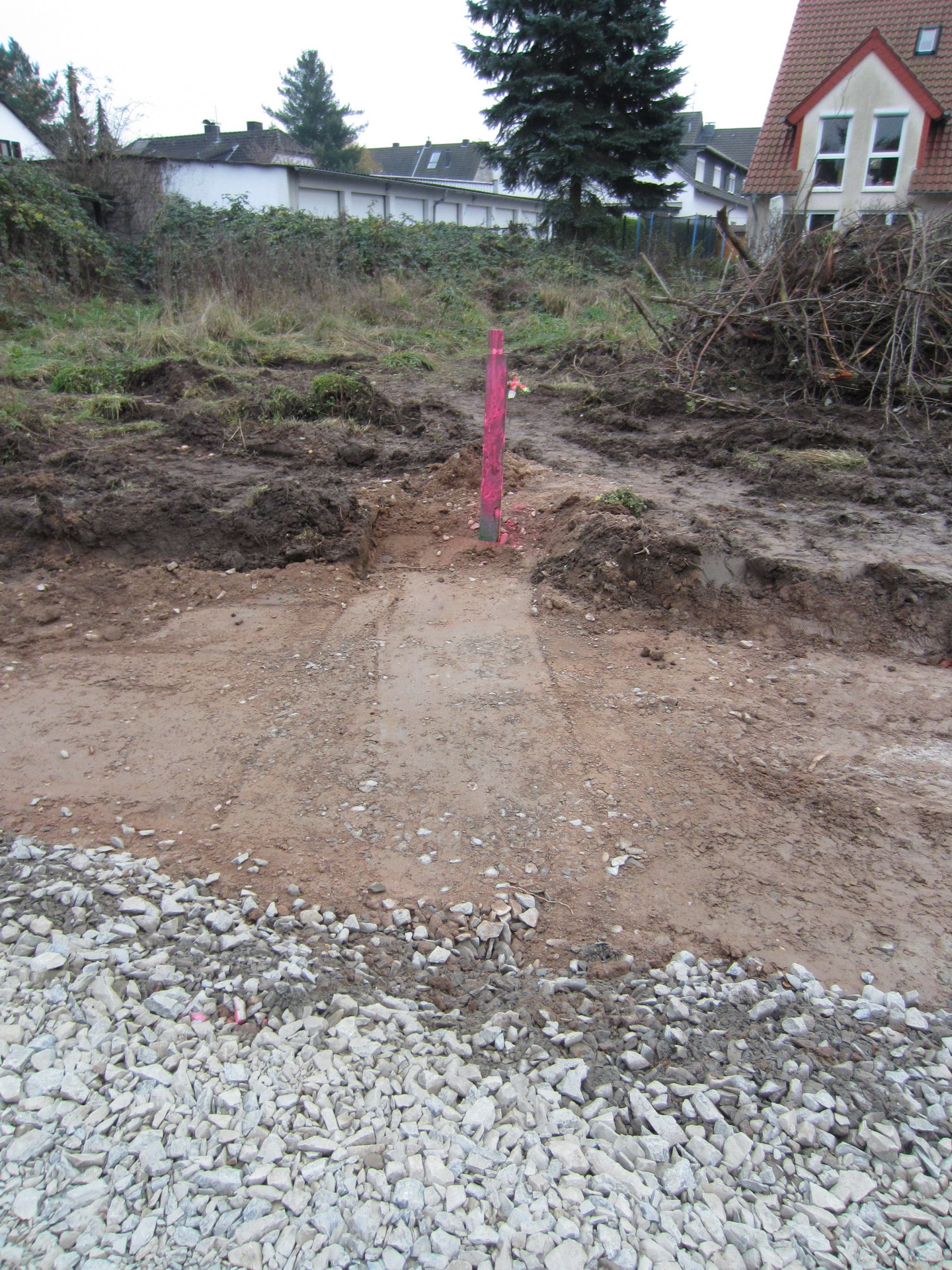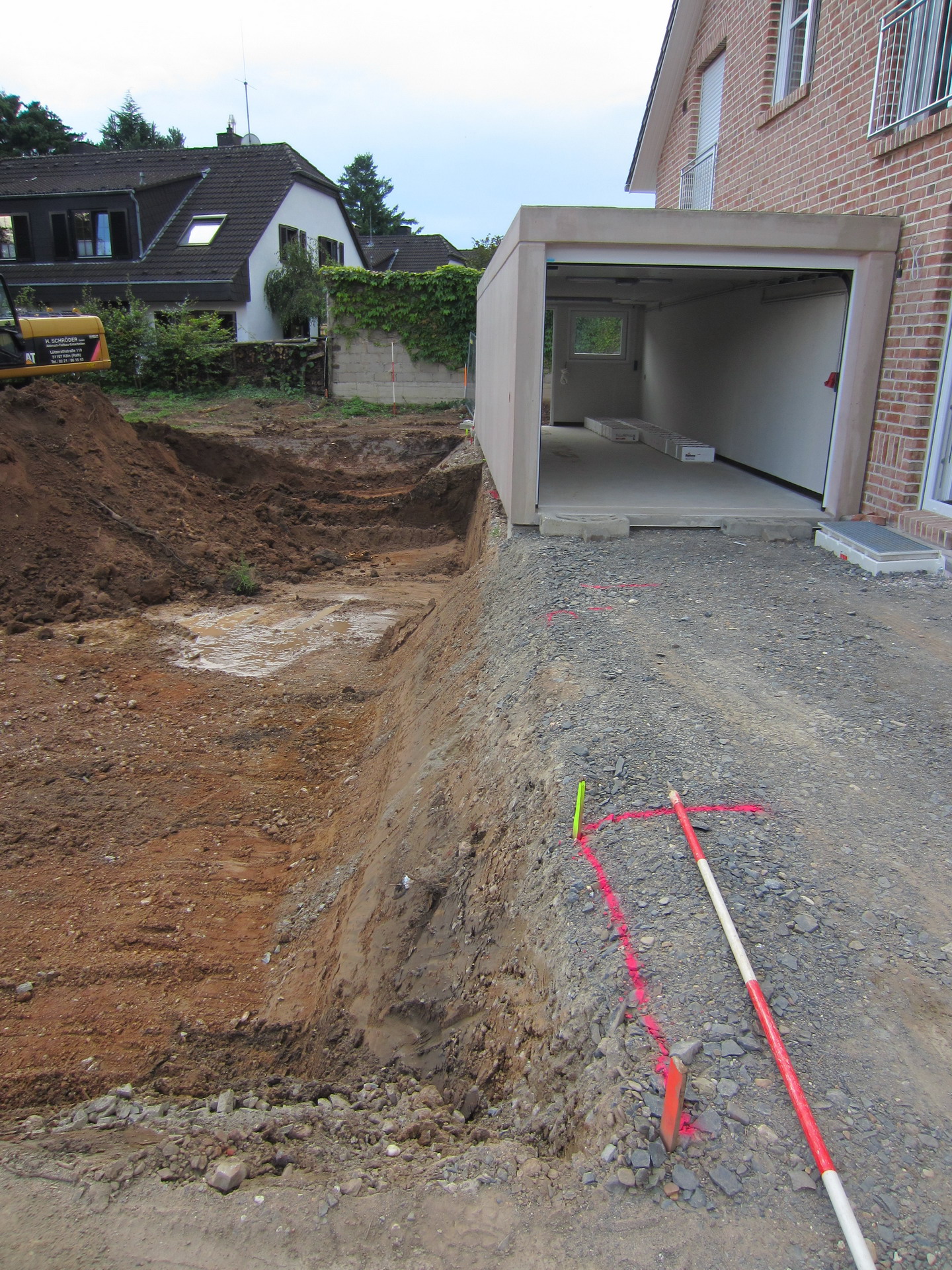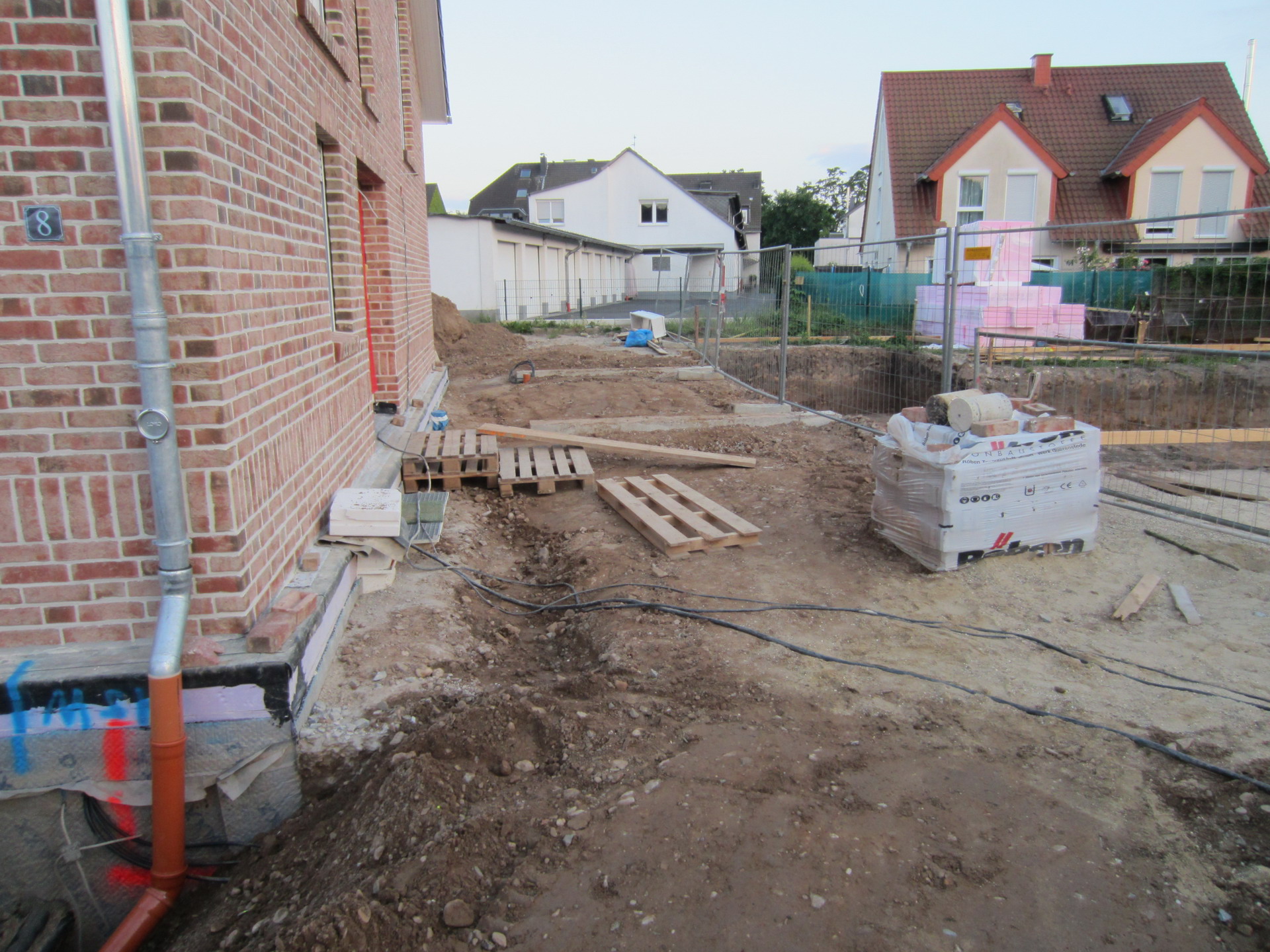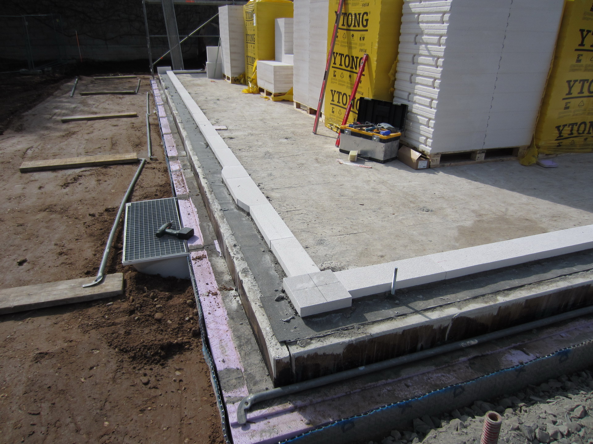 …die Herausforderung, zwischen Haustürschwelle und Einfahrt liegen Abdichtungen und 20cm Kellerdämmung in verschiedensten Höhen, welche es auszuklinken gilt