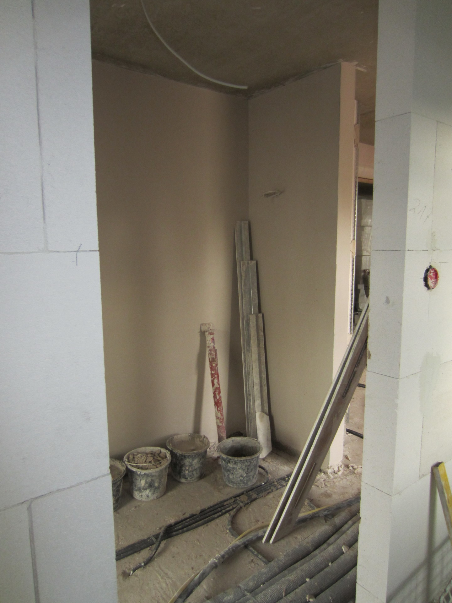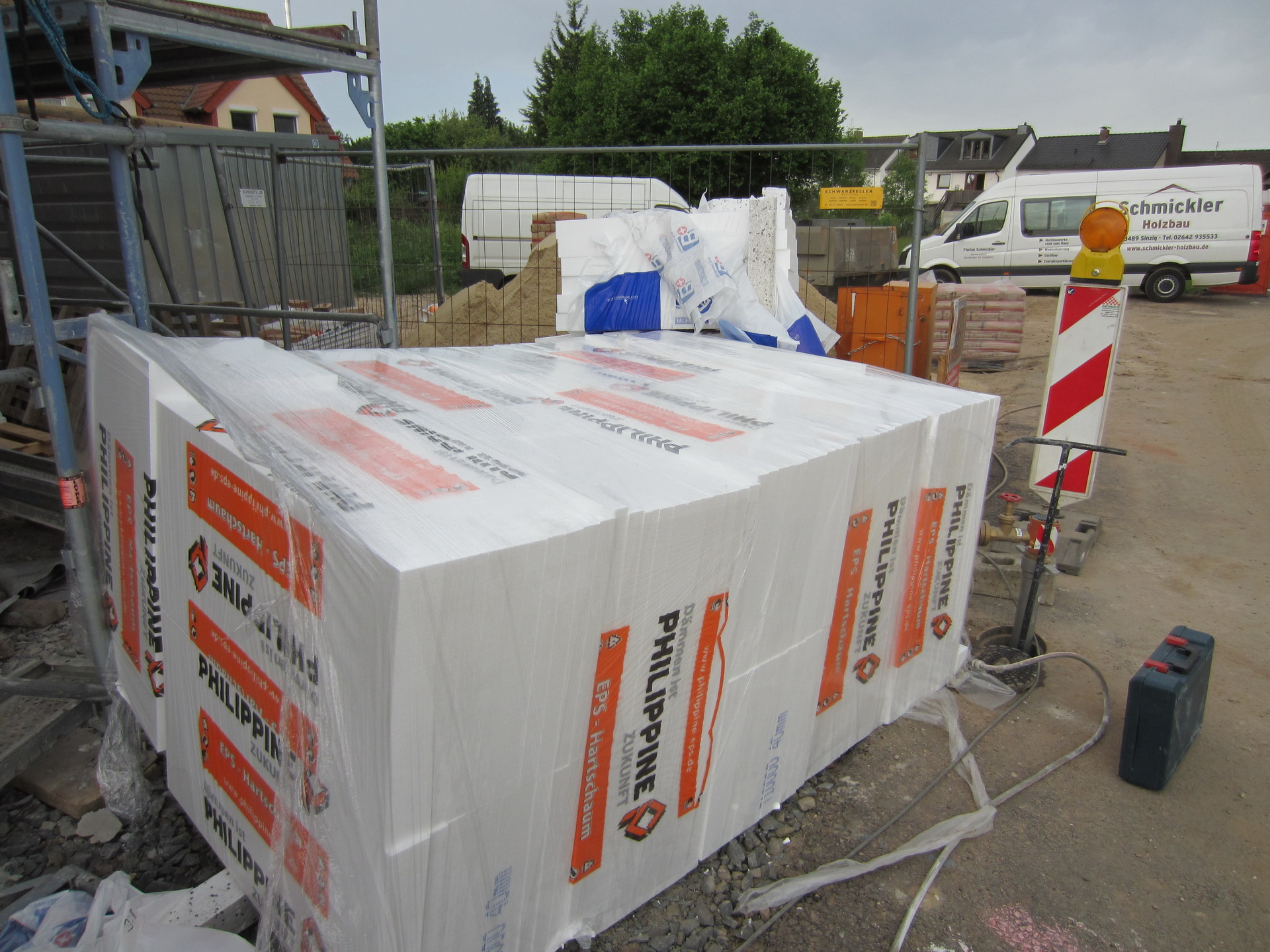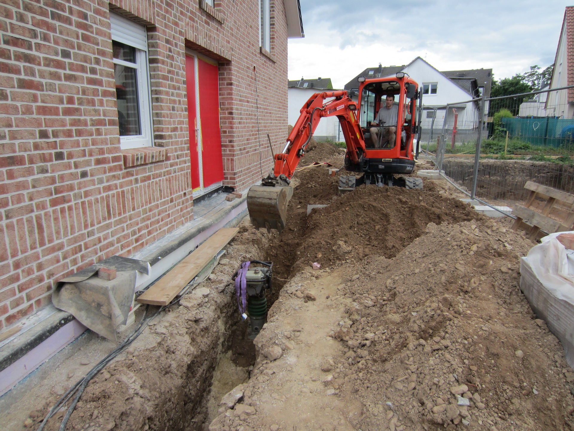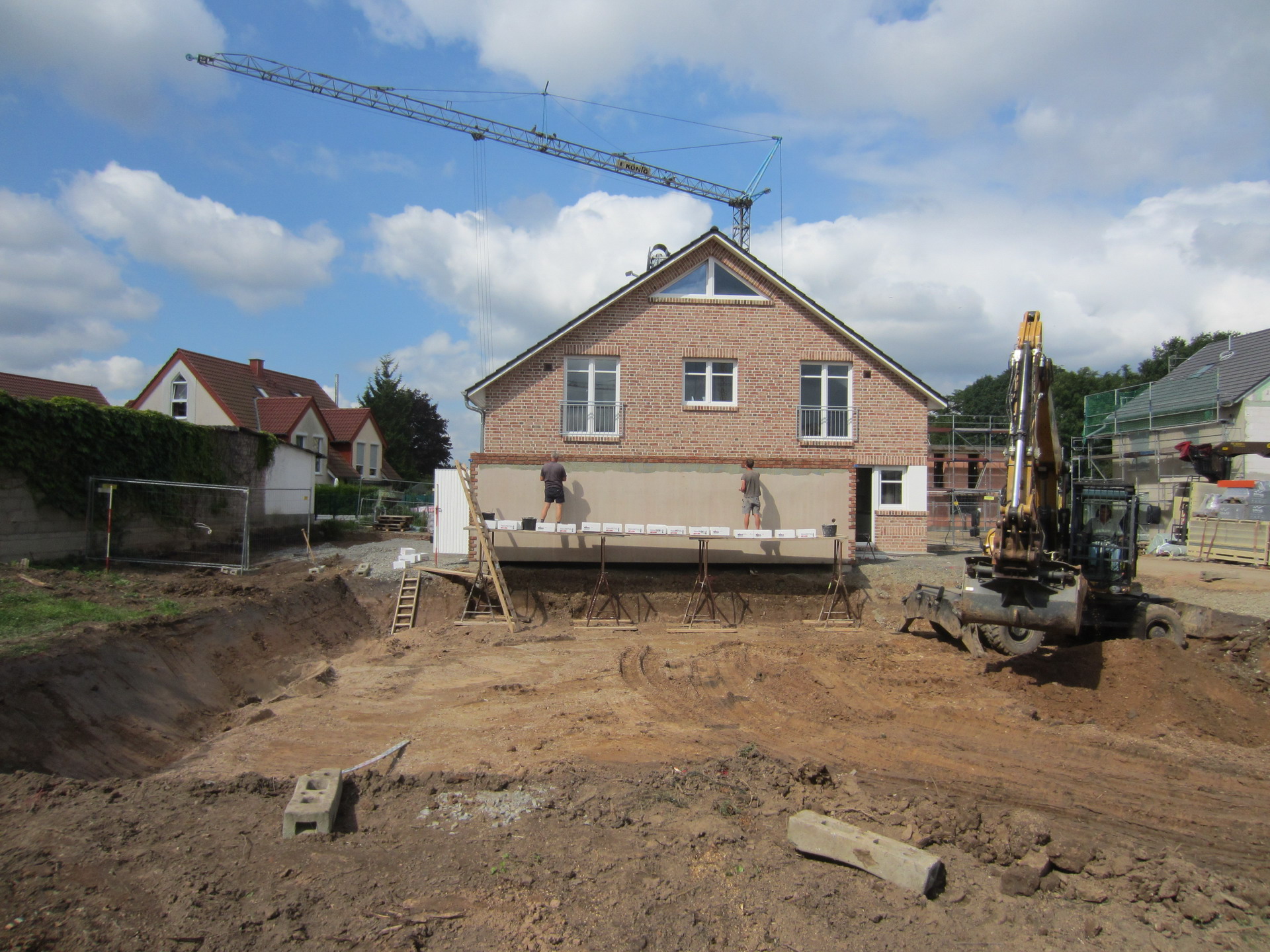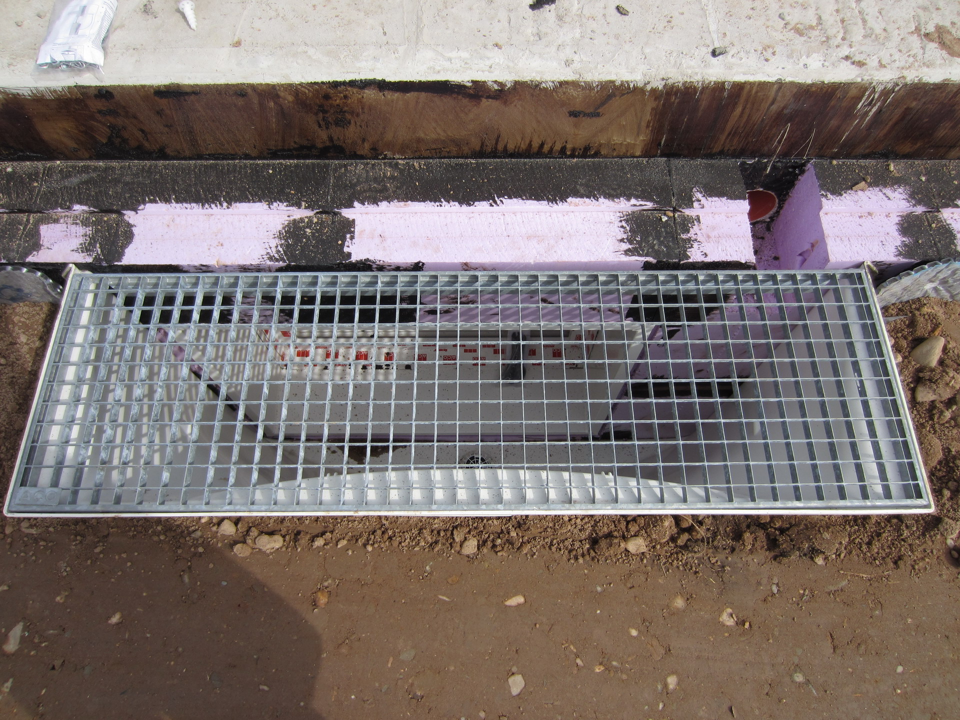 …die Herausforderung, zwischen Haustürschwelle und Einfahrt liegen Abdichtungen und 20cm Kellerdämmung in verschiedensten Höhen, welche es auszuklinken gilt
