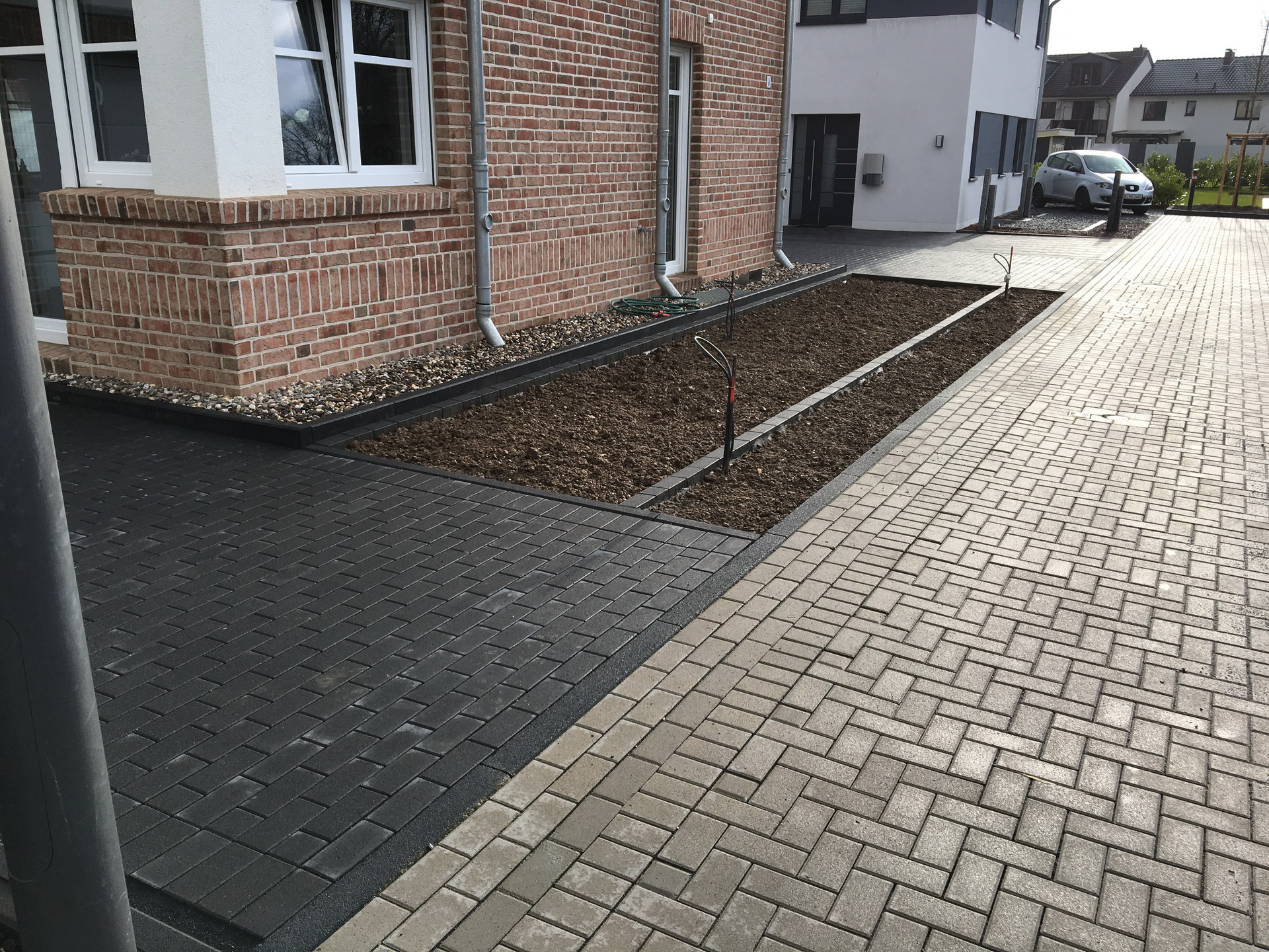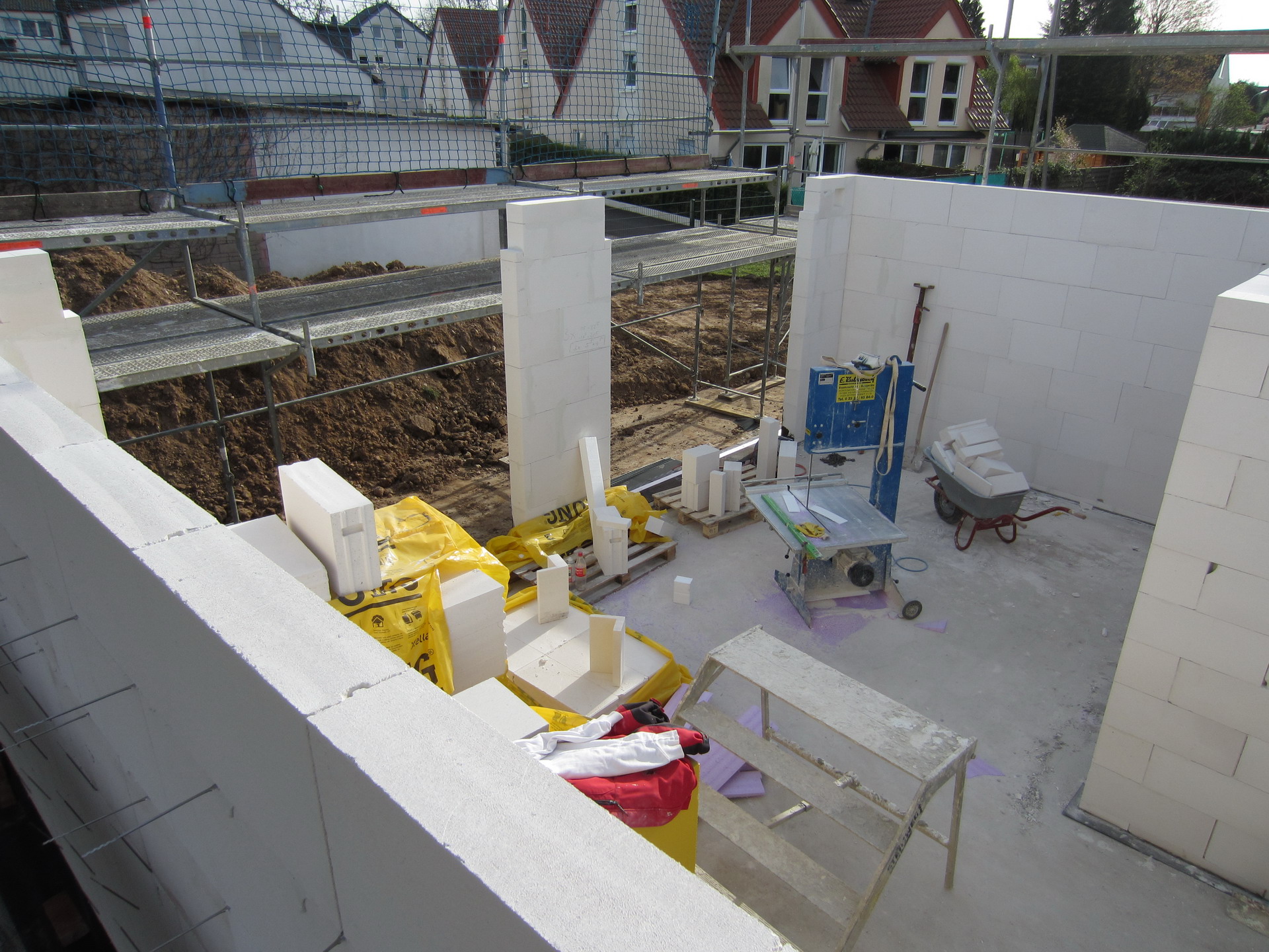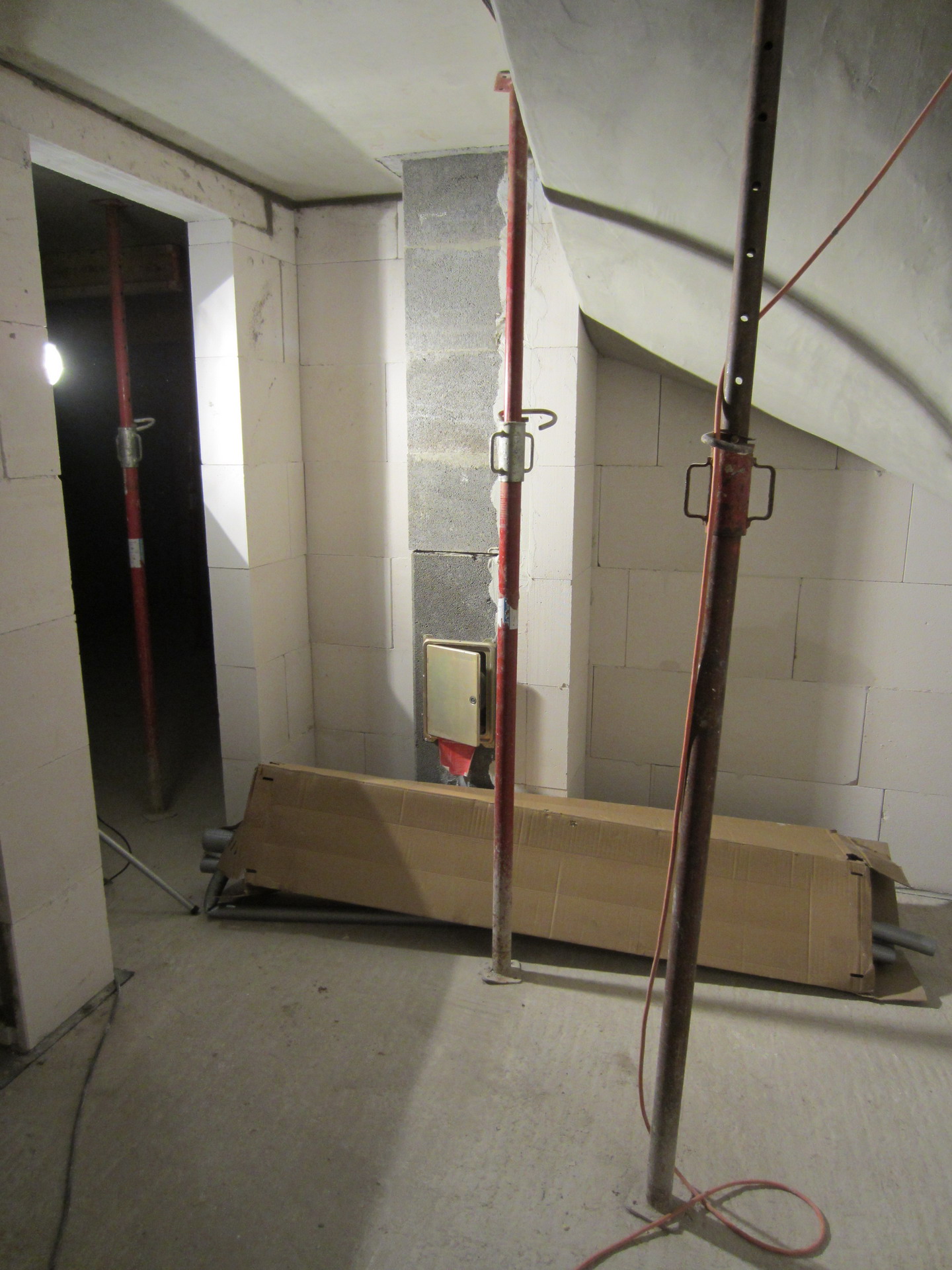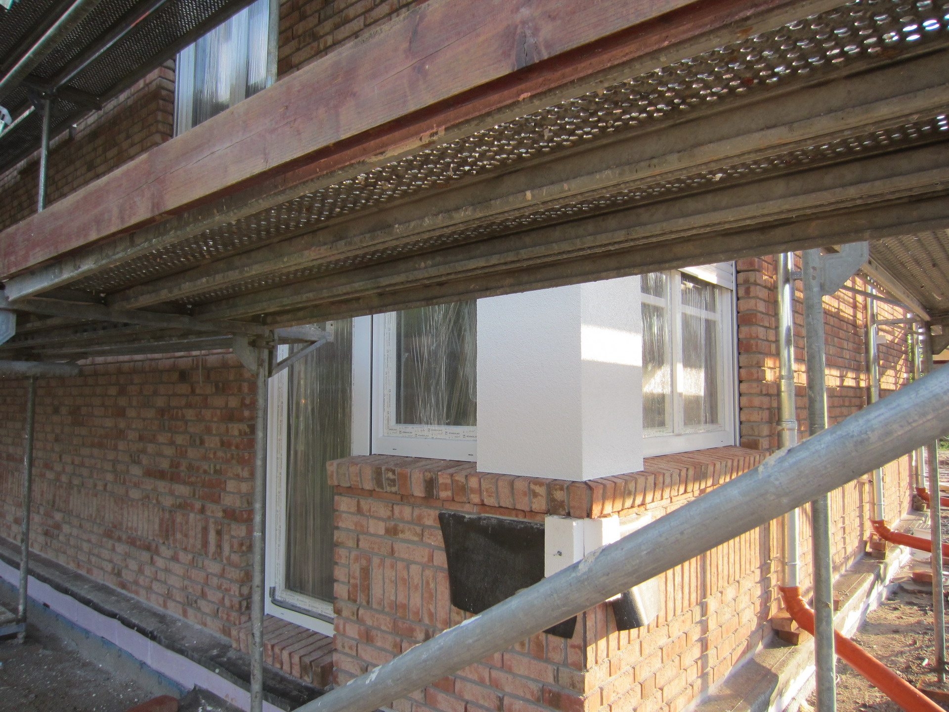…die Herausforderung, zwischen Haustürschwelle und Einfahrt liegen Abdichtungen und 20cm Kellerdämmung in verschiedensten Höhen, welche es auszuklinken gilt