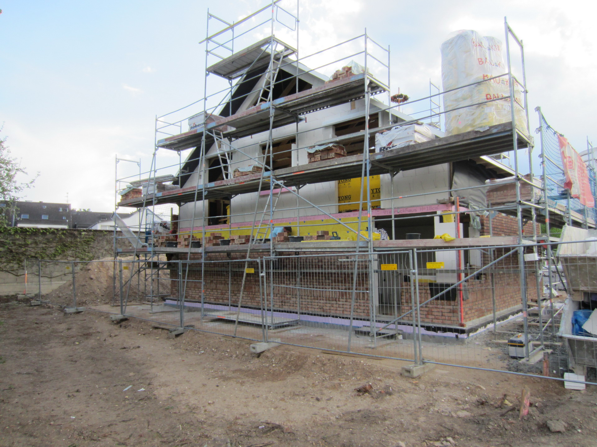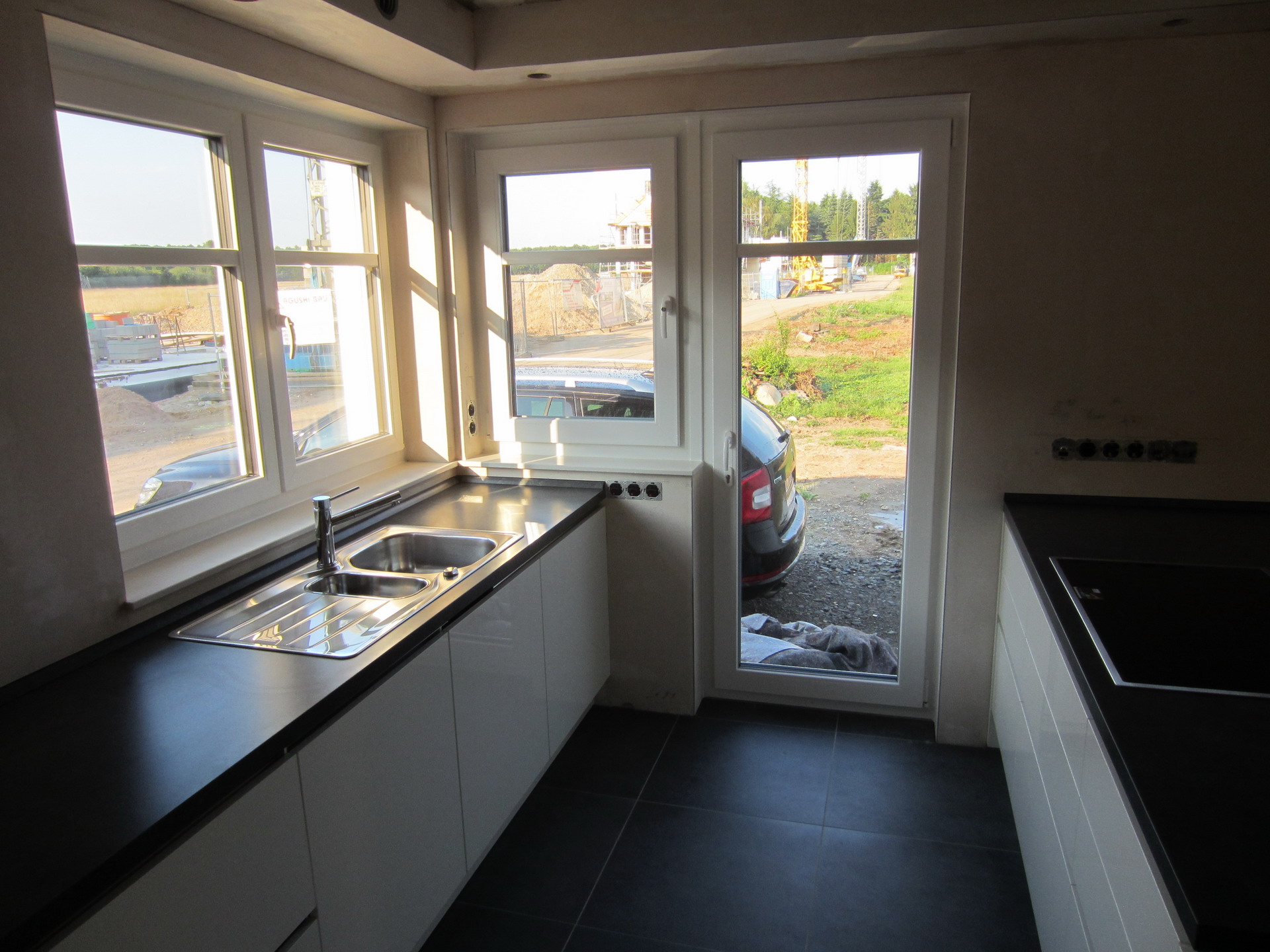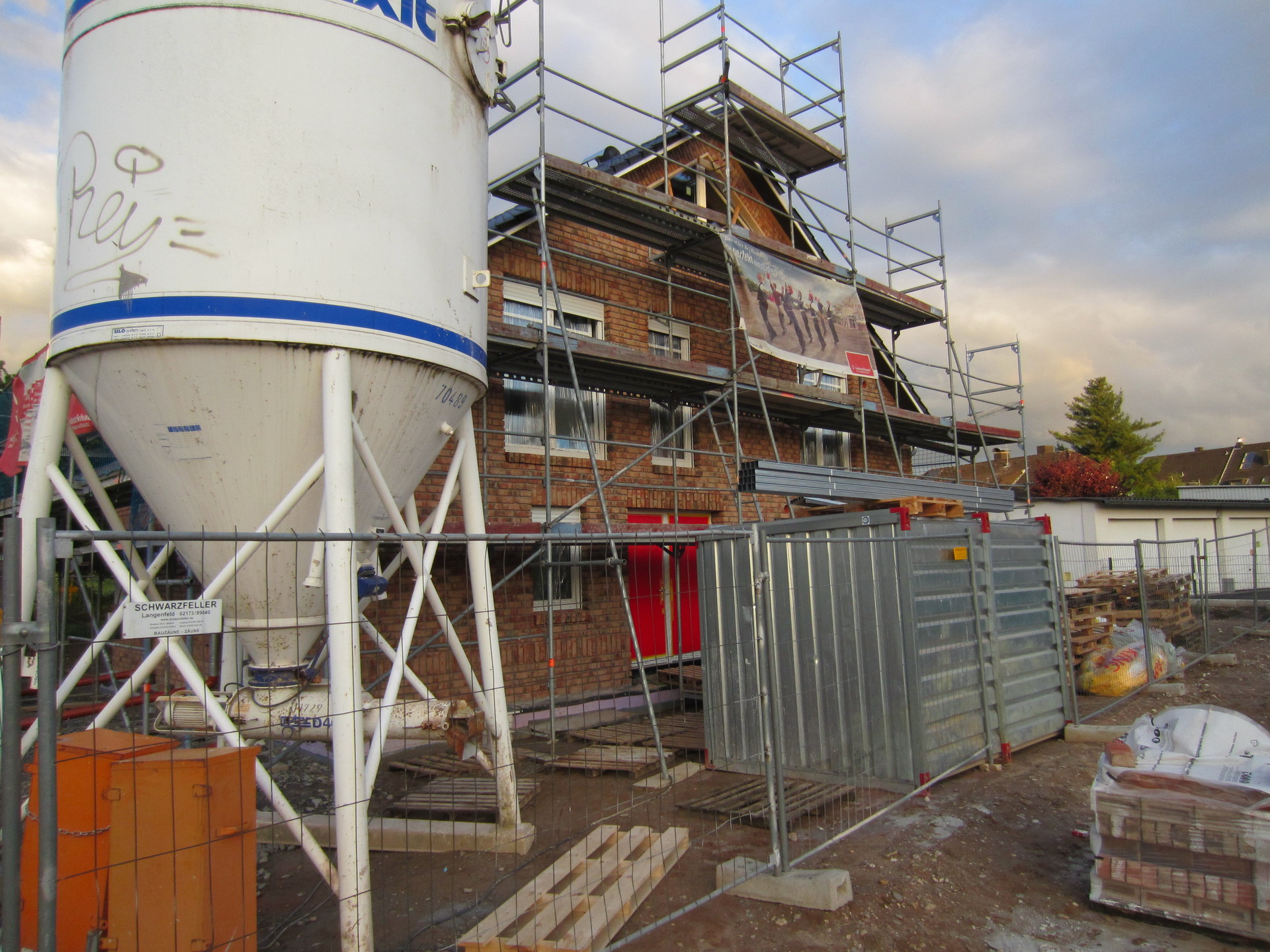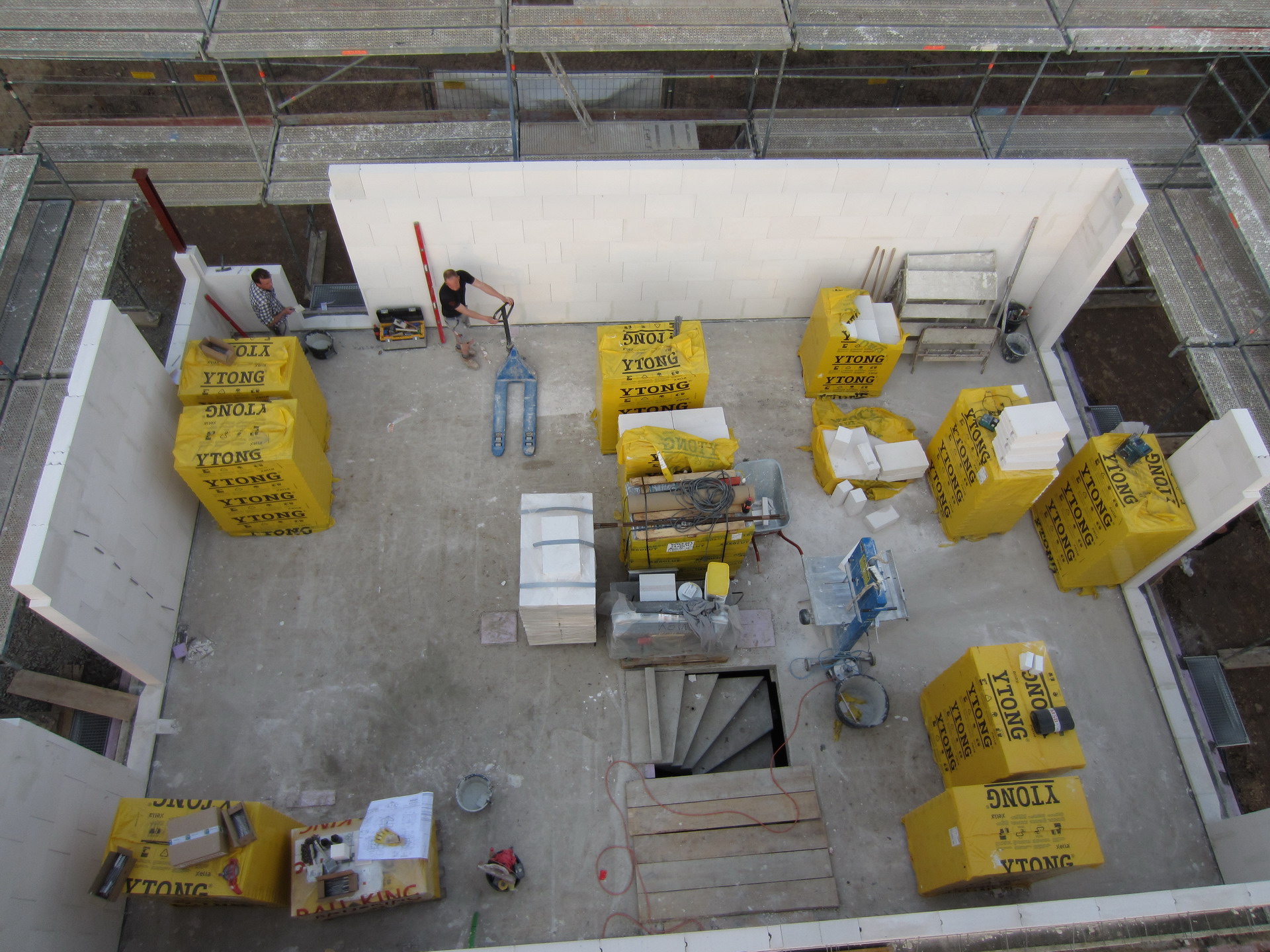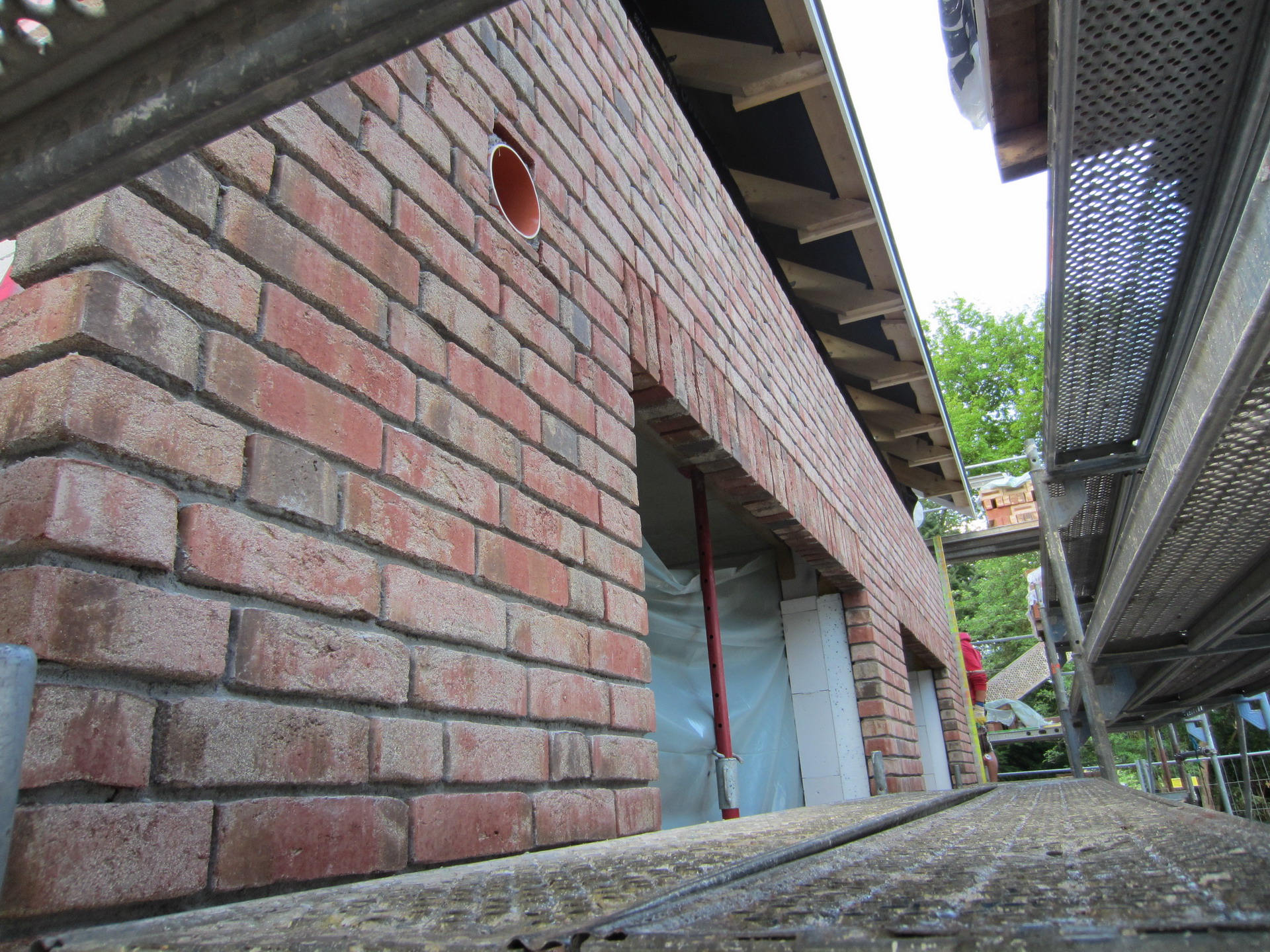 …die Herausforderung, zwischen Haustürschwelle und Einfahrt liegen Abdichtungen und 20cm Kellerdämmung in verschiedensten Höhen, welche es auszuklinken gilt
