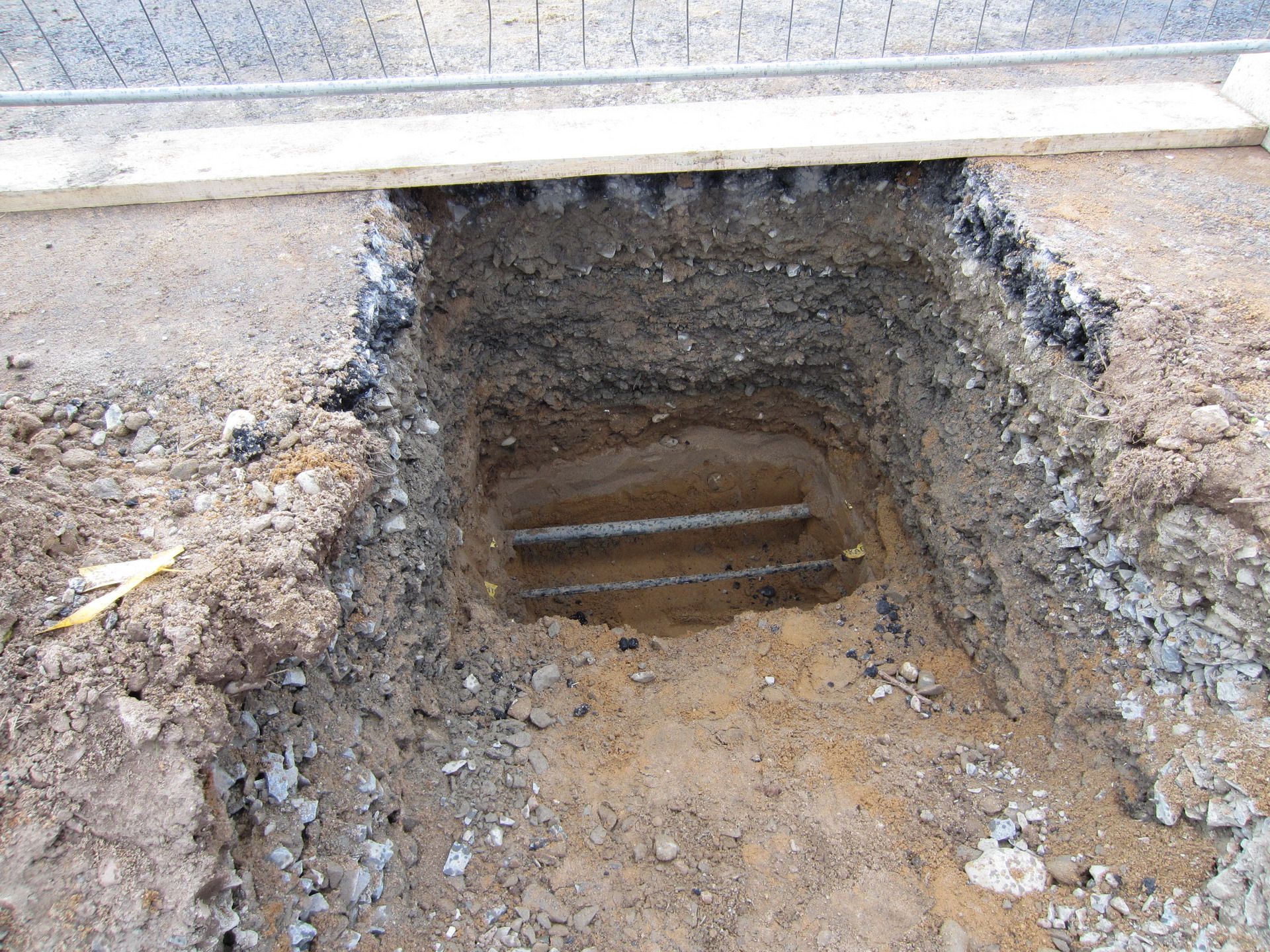 …bis auf das Grauwackeschotterbett wird zurückgebaut und sicherheitshalber nochmals verdichtet.