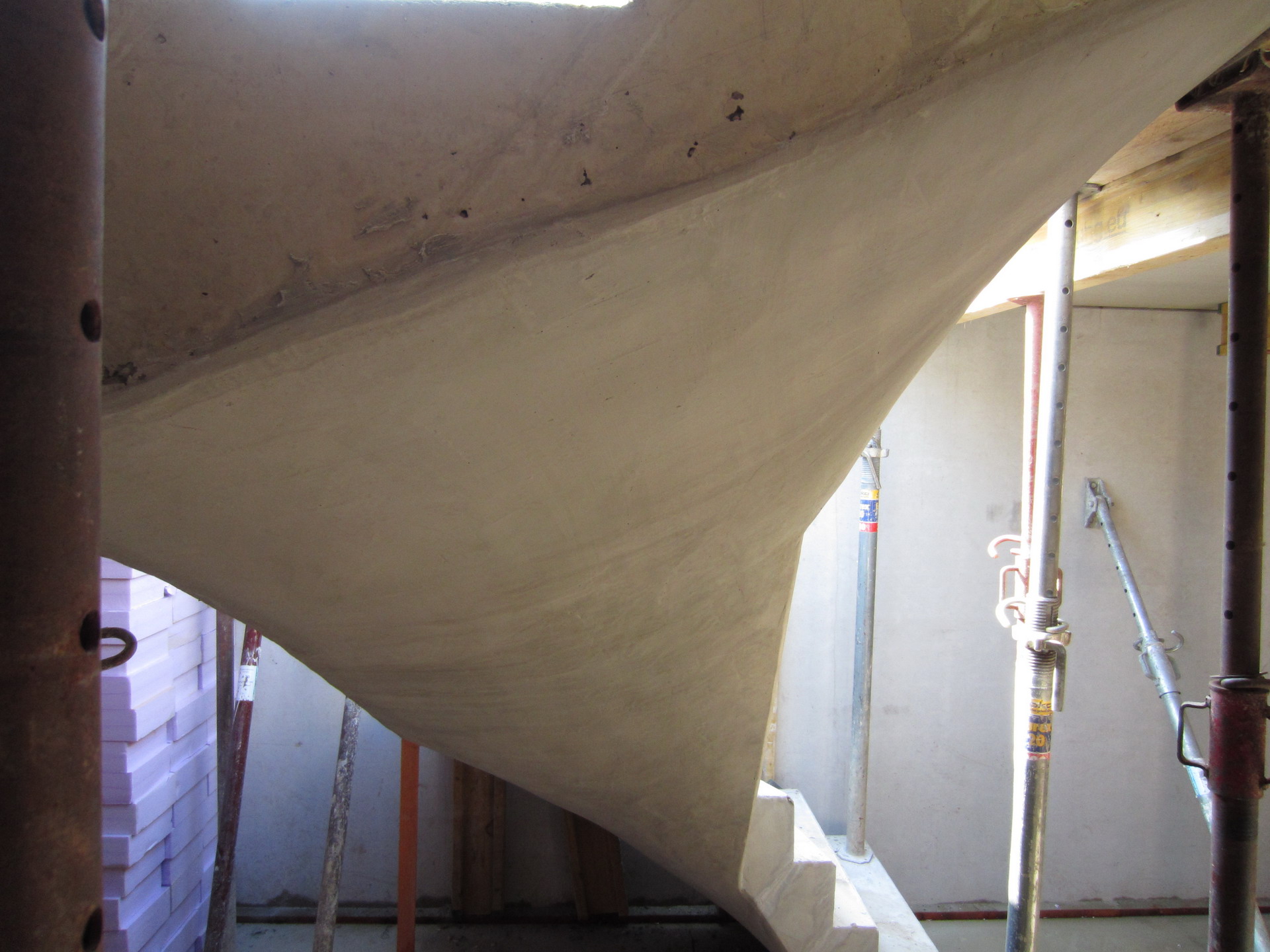 …über 600Kg Beton-Podest, Tocano in der Farbe CD 107, Sichtkanten samtiert