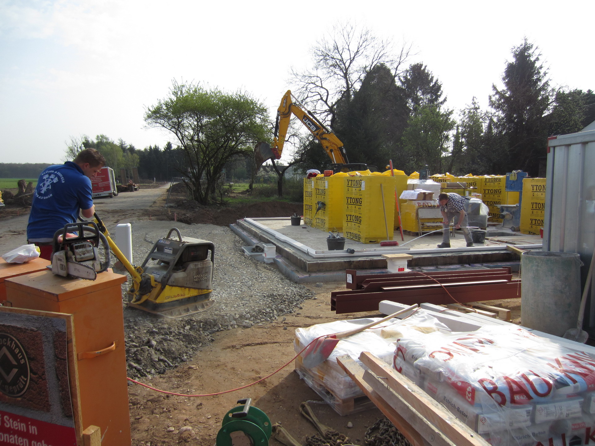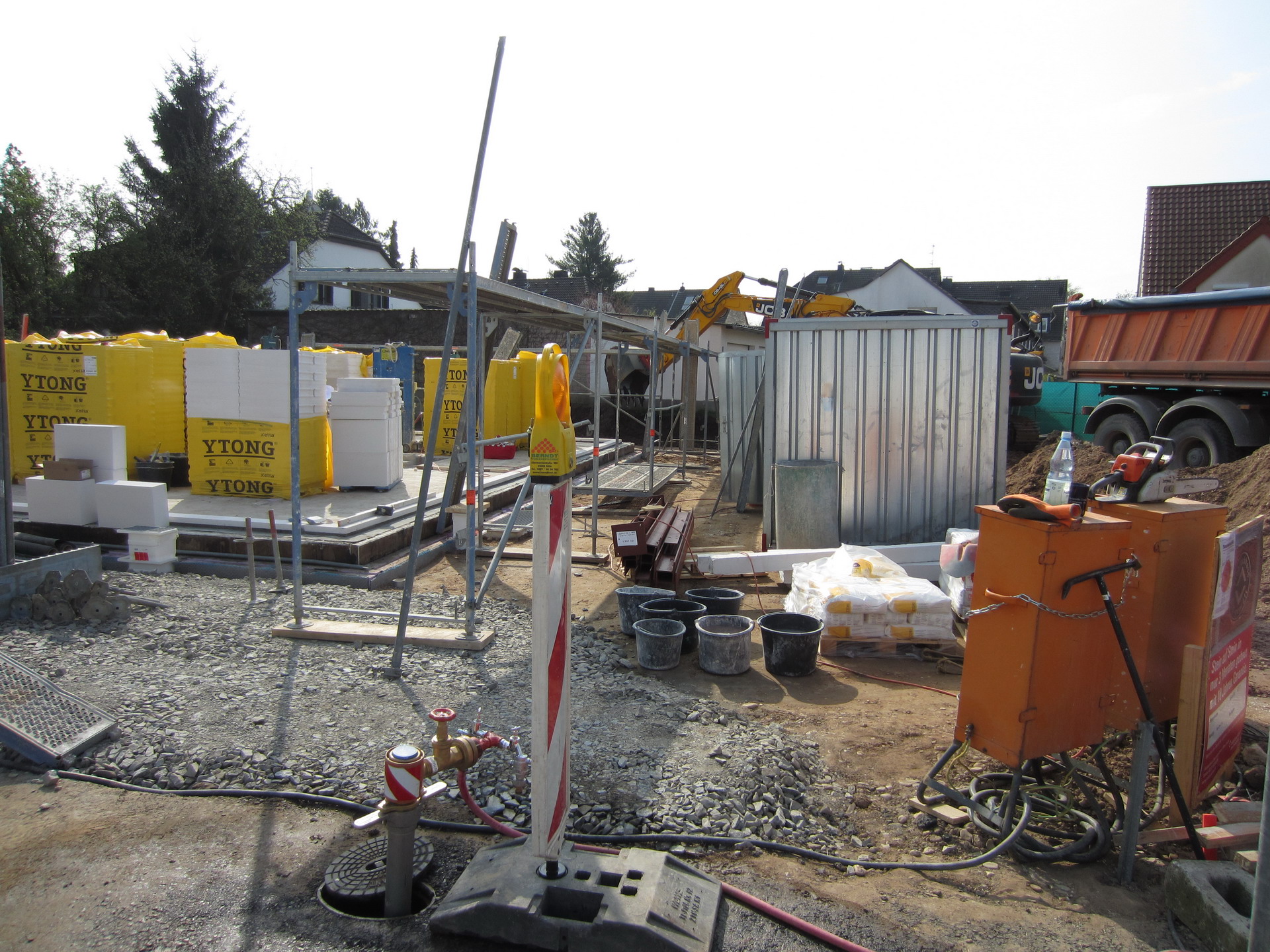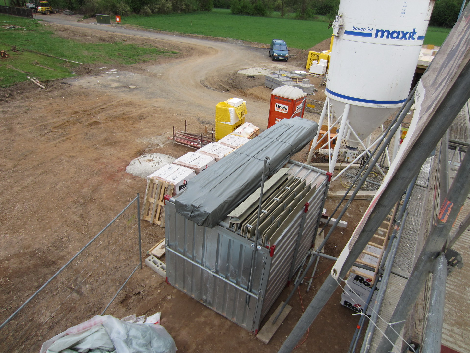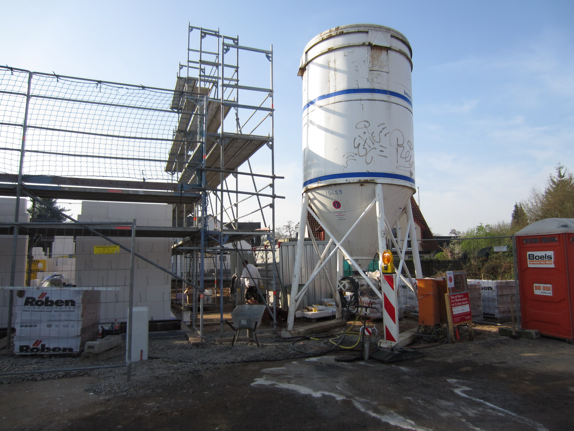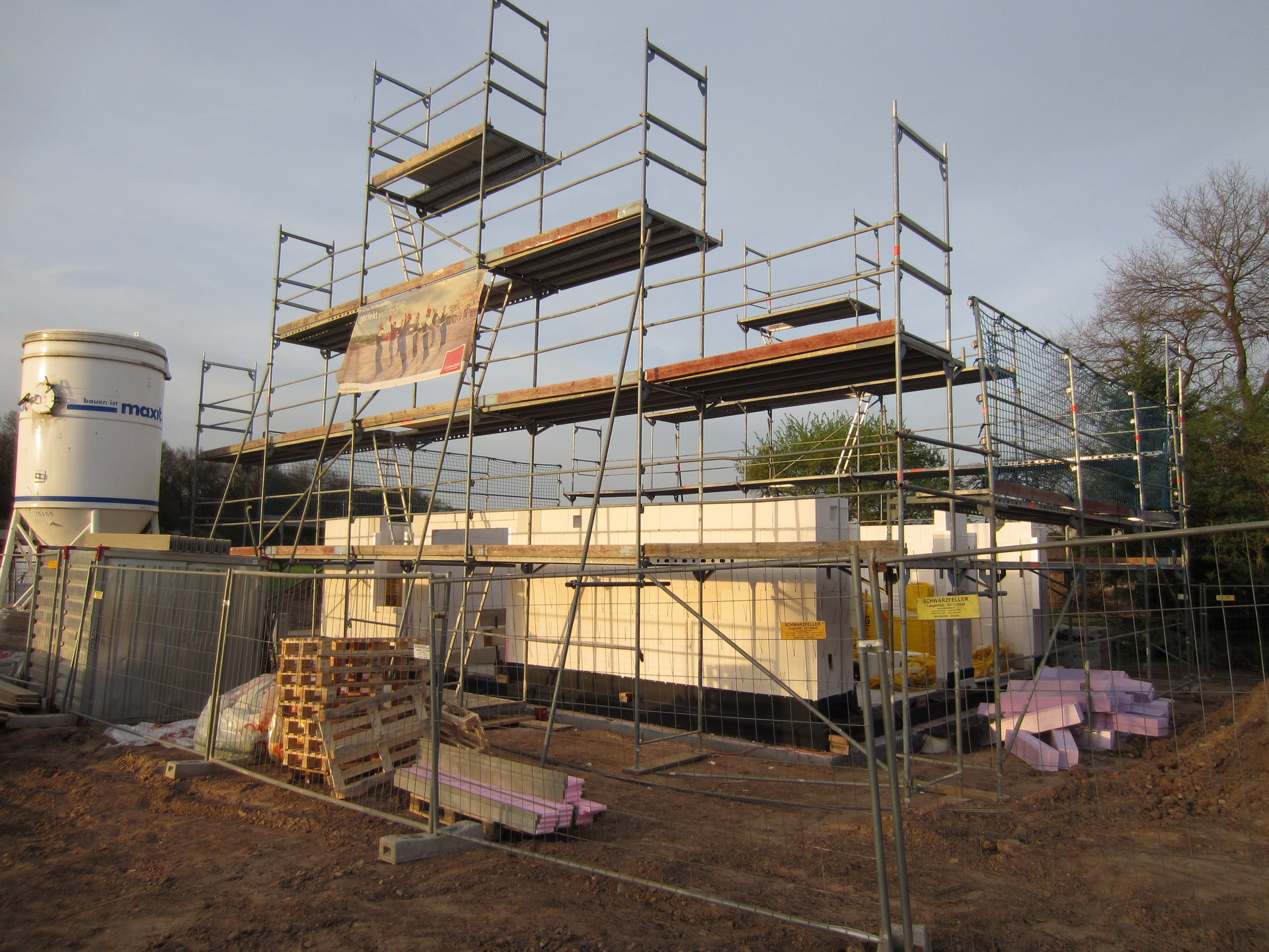…der April beschert uns einen weiteren Schauer mit Hageleinlage – die Bauherren laune sinkt dramatisch, man verschanzt sich mit Kölsch im Rohbau gegenüber