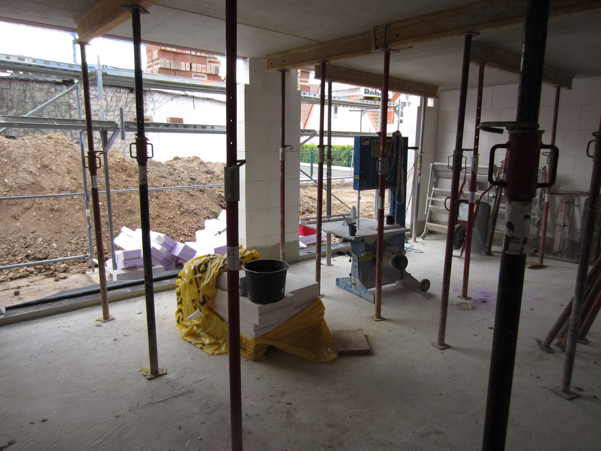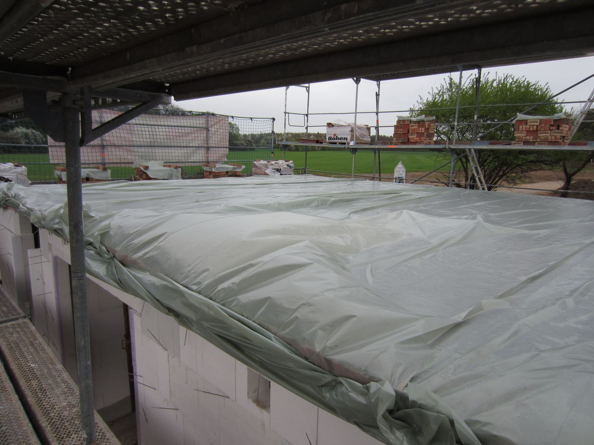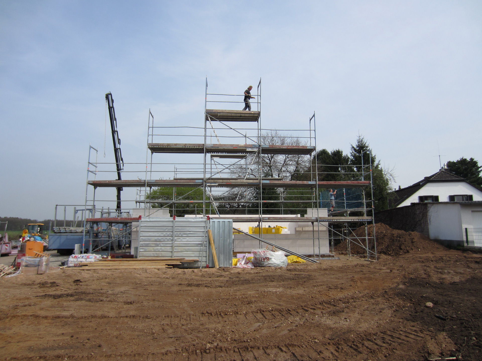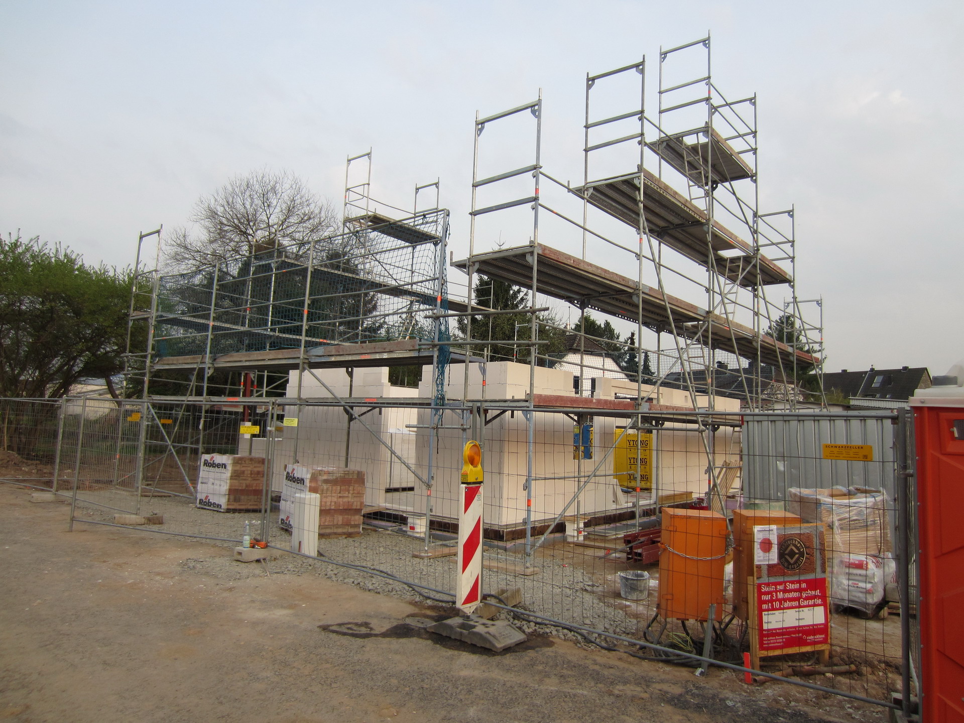…der April beschert uns einen weiteren Schauer mit Hageleinlage – die Bauherren laune sinkt dramatisch, man verschanzt sich mit Kölsch im Rohbau gegenüber