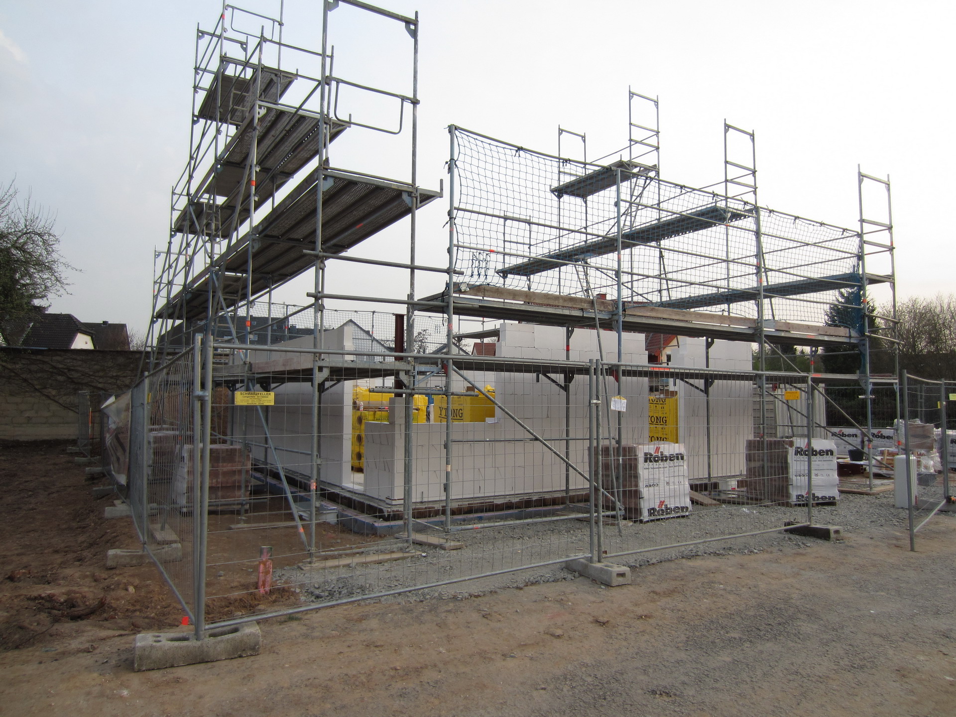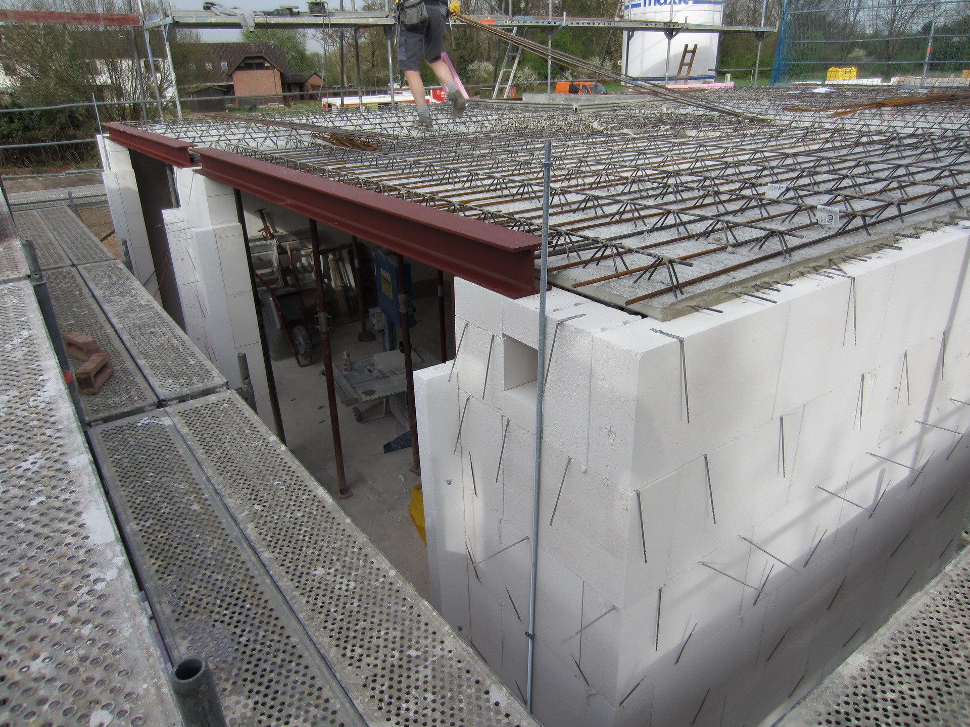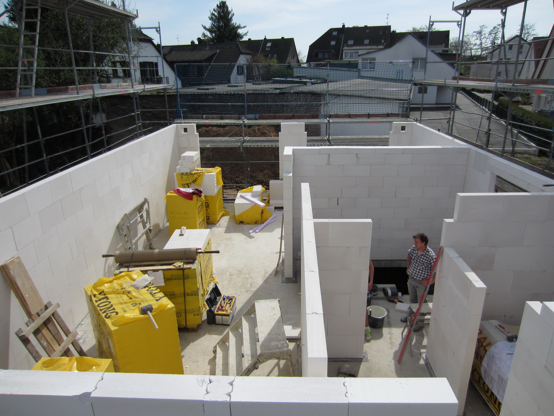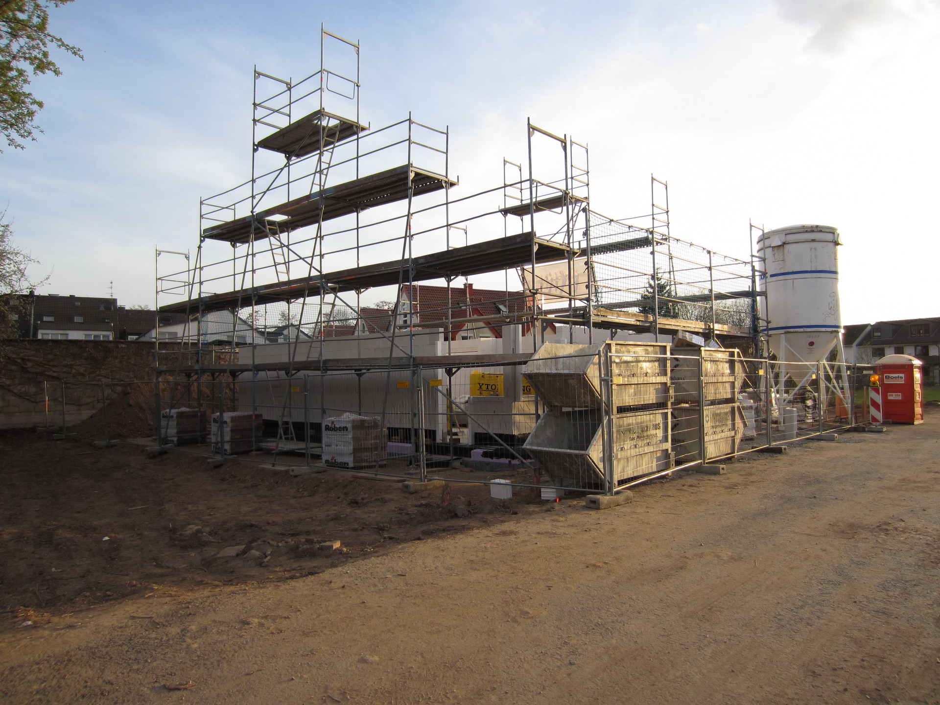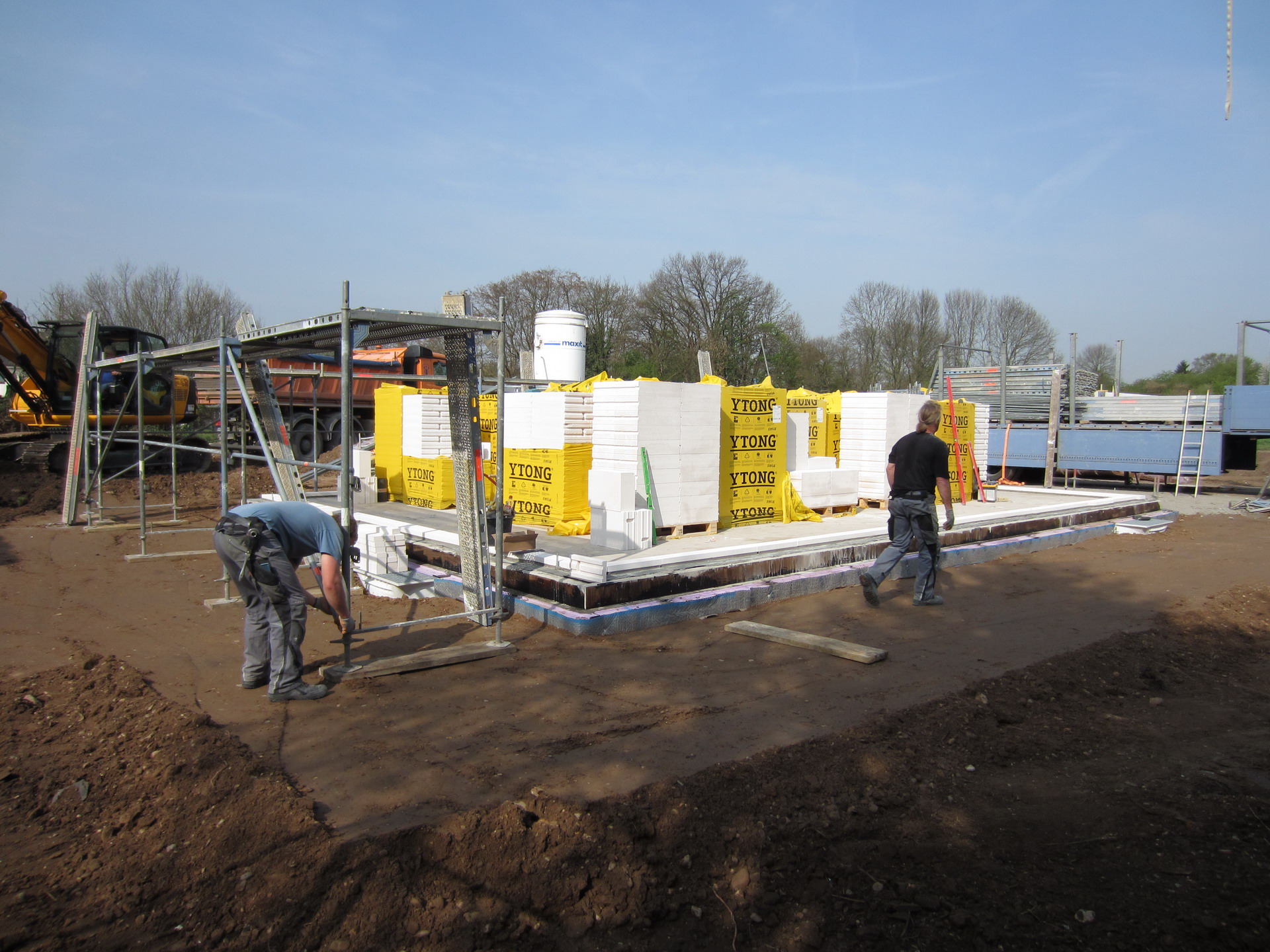 …der April beschert uns einen weiteren Schauer mit Hageleinlage – die Bauherren laune sinkt dramatisch, man verschanzt sich mit Kölsch im Rohbau gegenüber