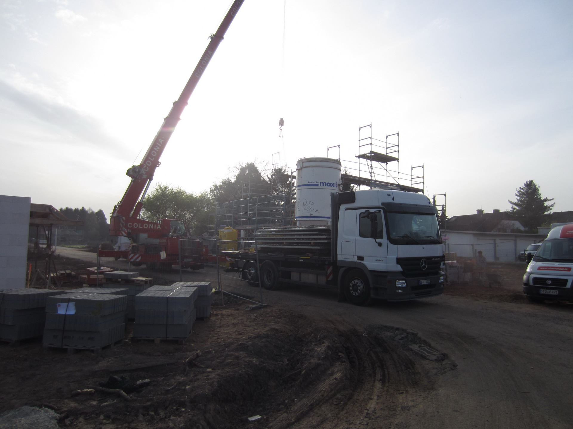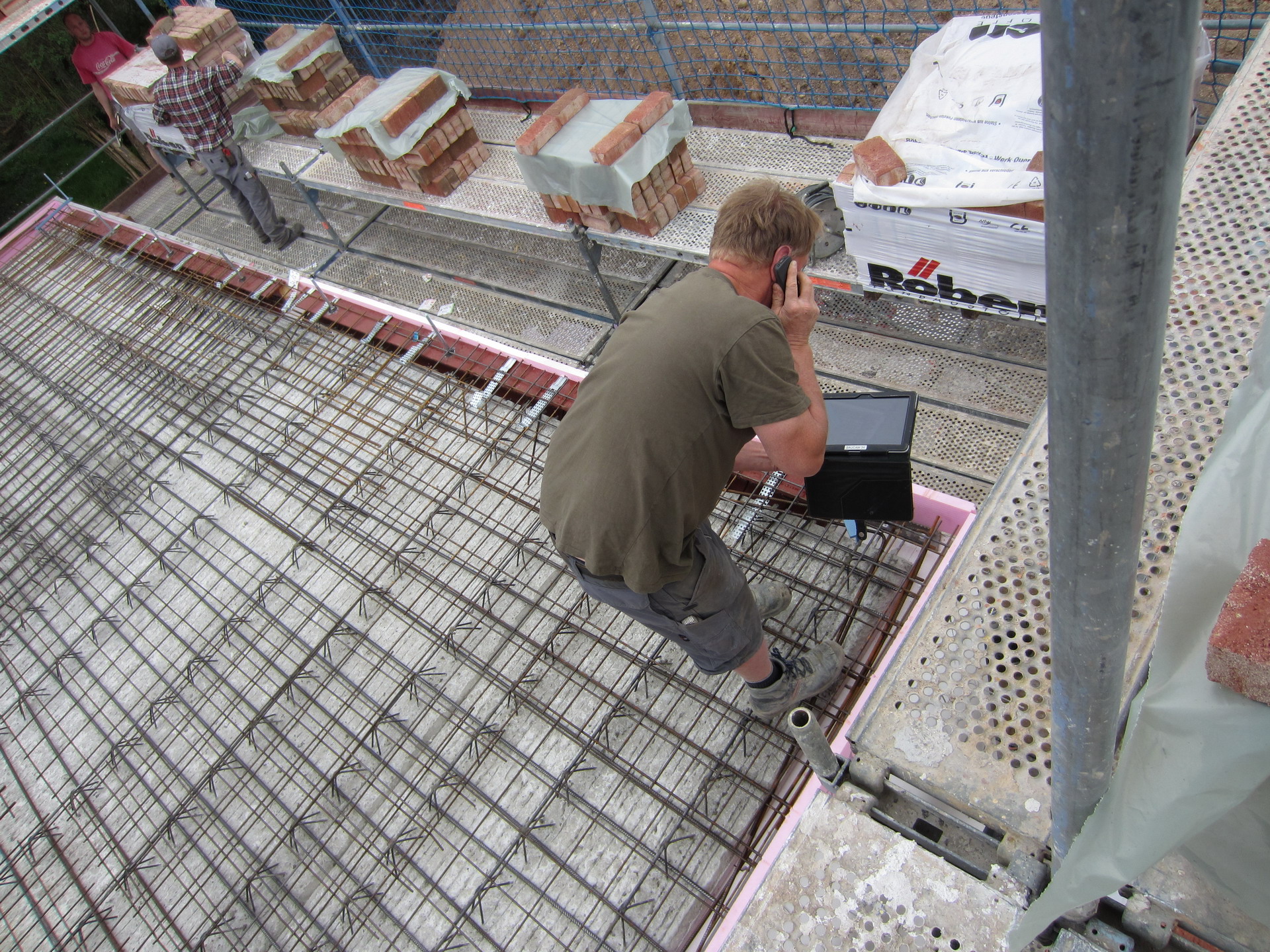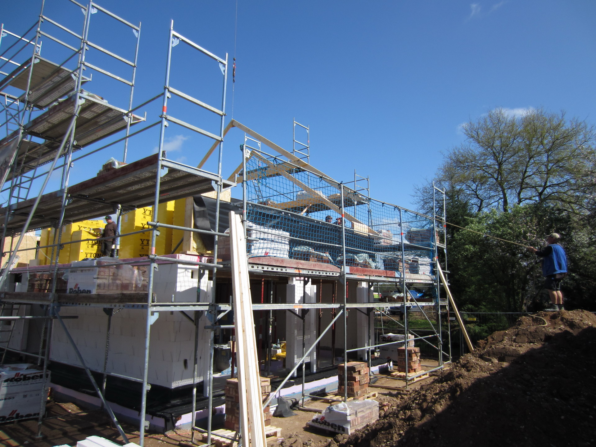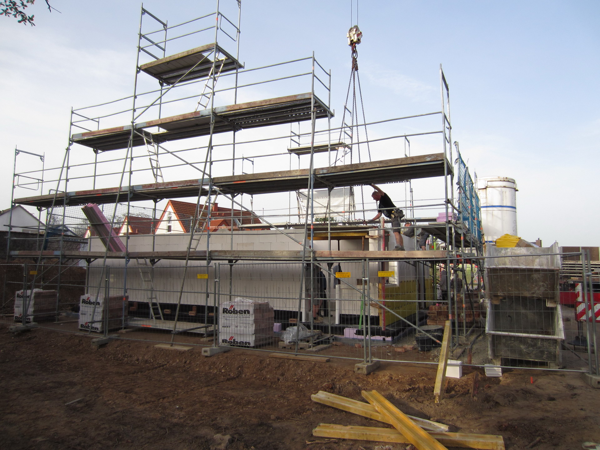 …der April beschert uns einen weiteren Schauer mit Hageleinlage – die Bauherren laune sinkt dramatisch, man verschanzt sich mit Kölsch im Rohbau gegenüber