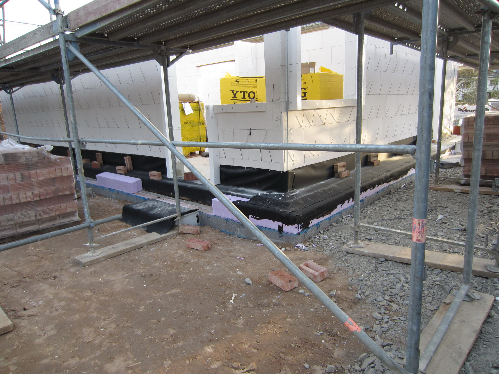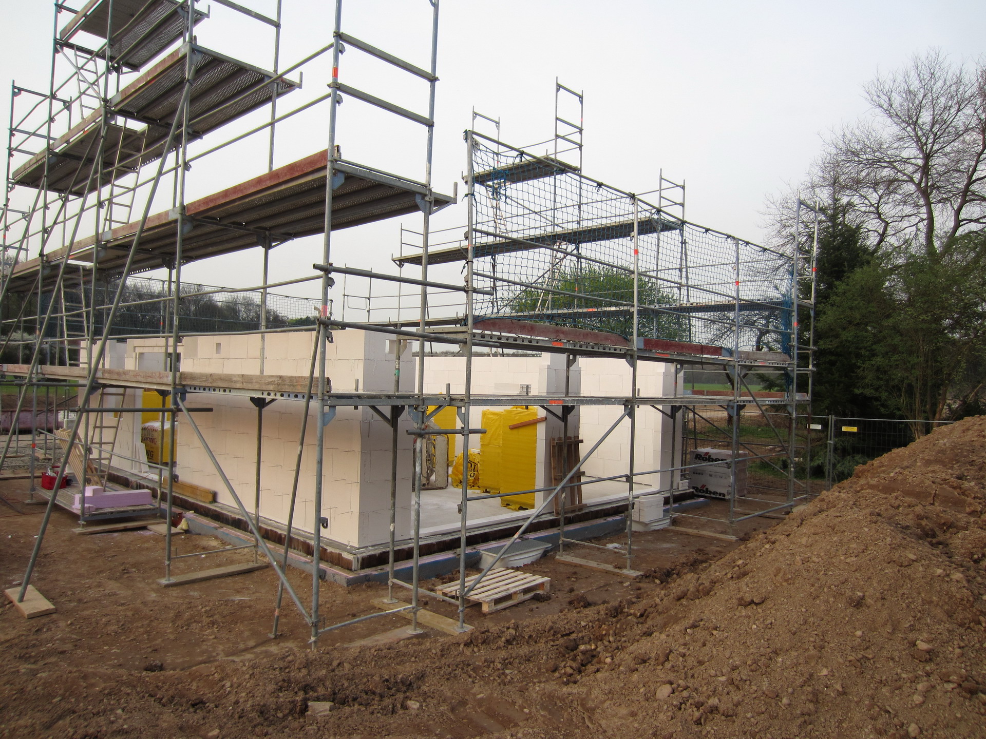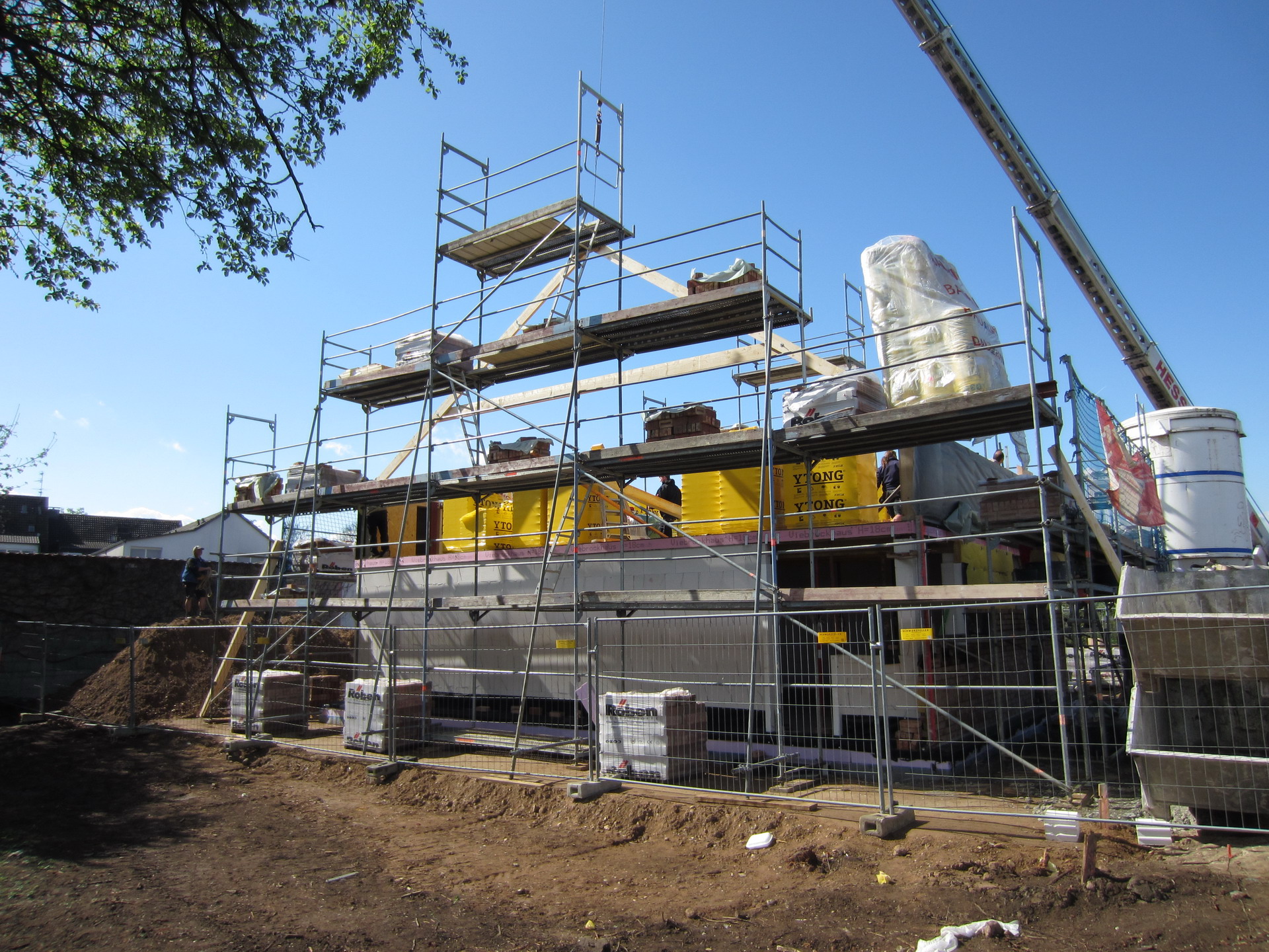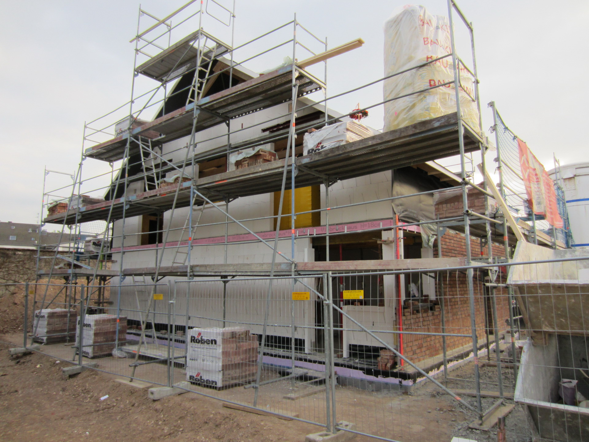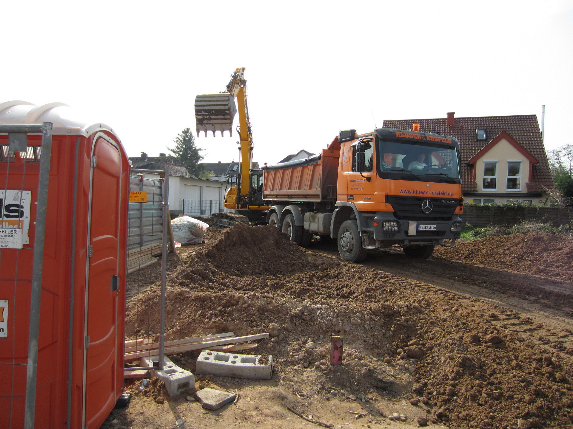 …der April beschert uns einen weiteren Schauer mit Hageleinlage – die Bauherren laune sinkt dramatisch, man verschanzt sich mit Kölsch im Rohbau gegenüber