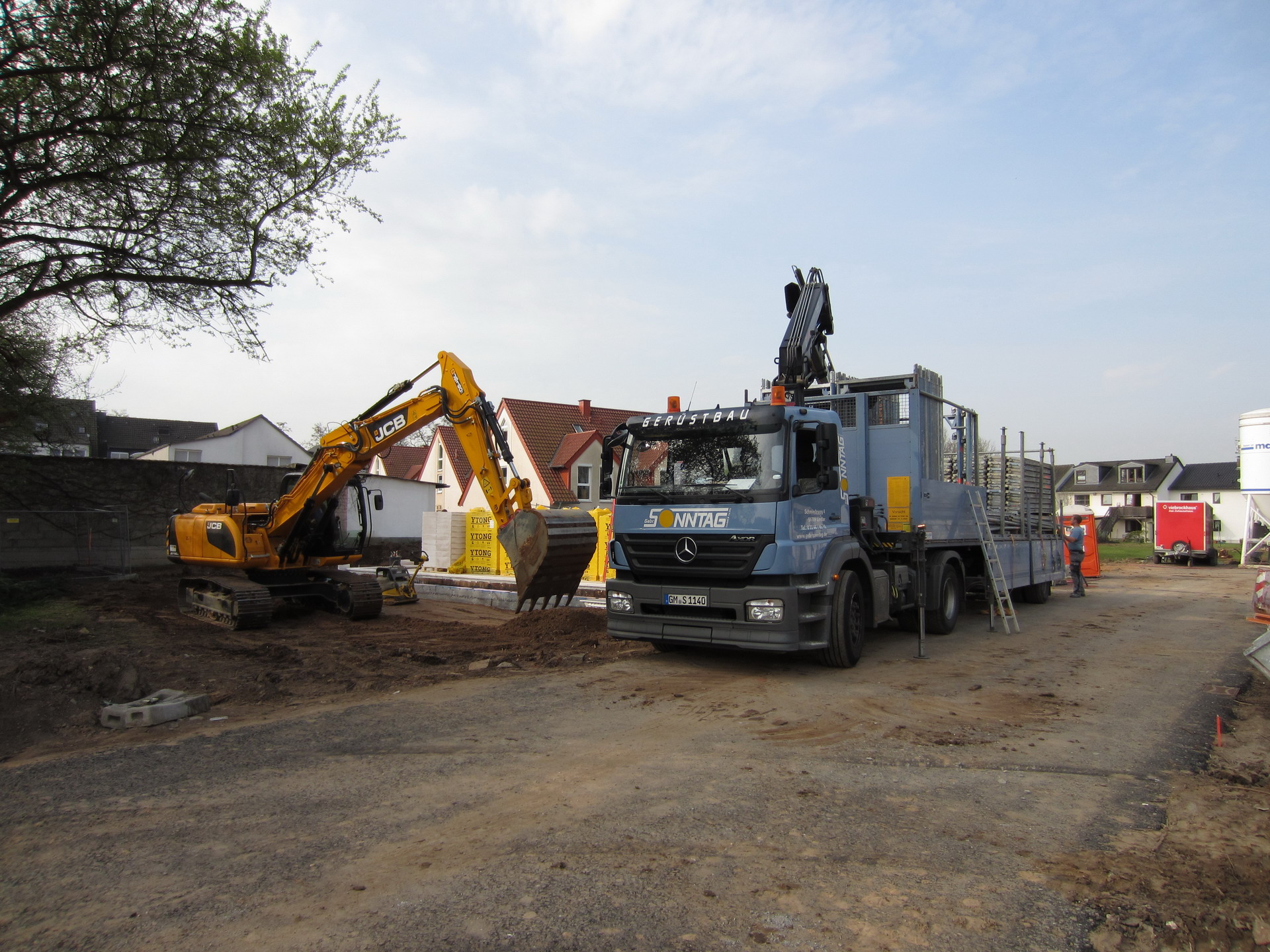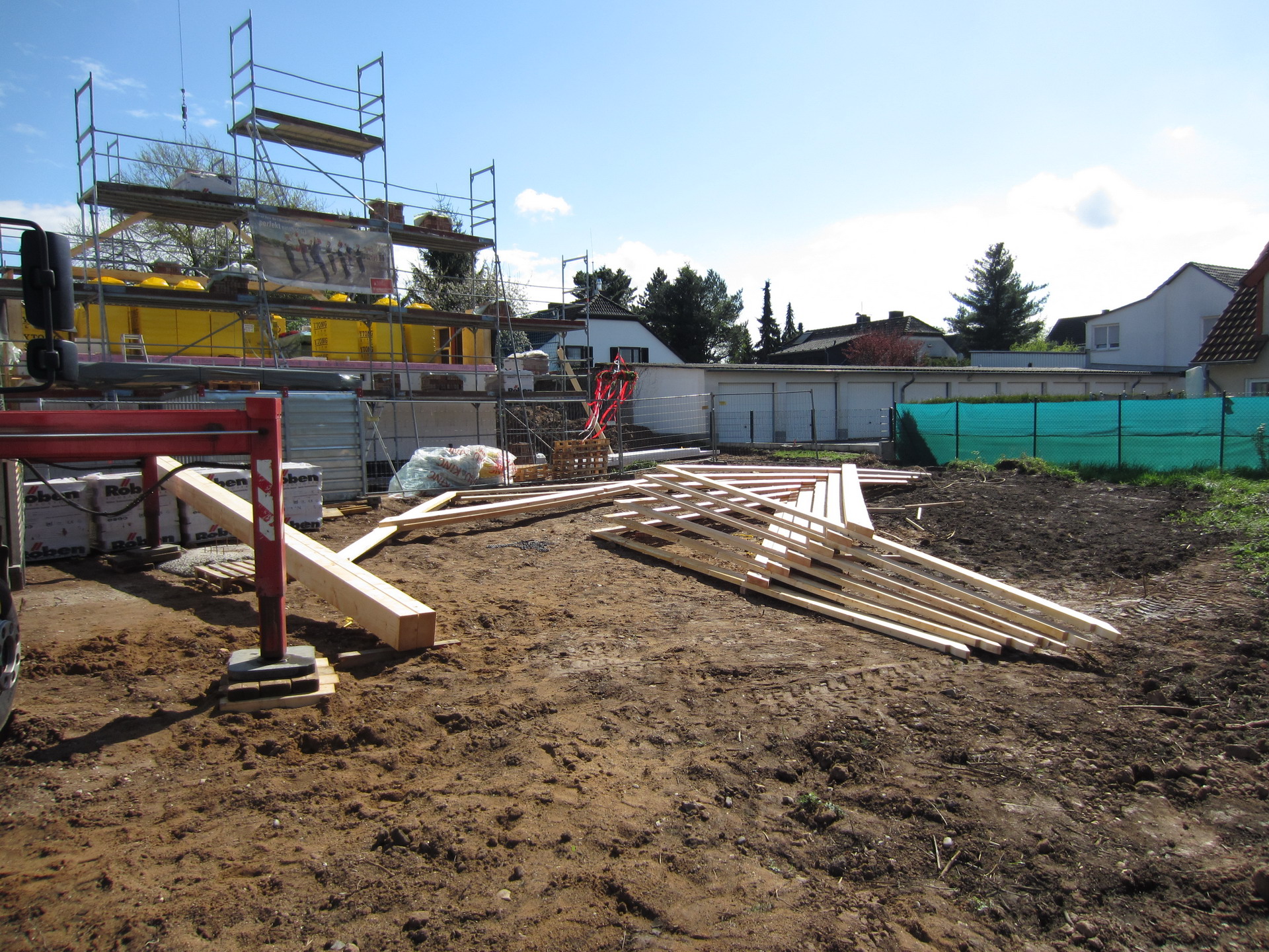 …die Zimmermänner rangieren noch schnell Baumaterial