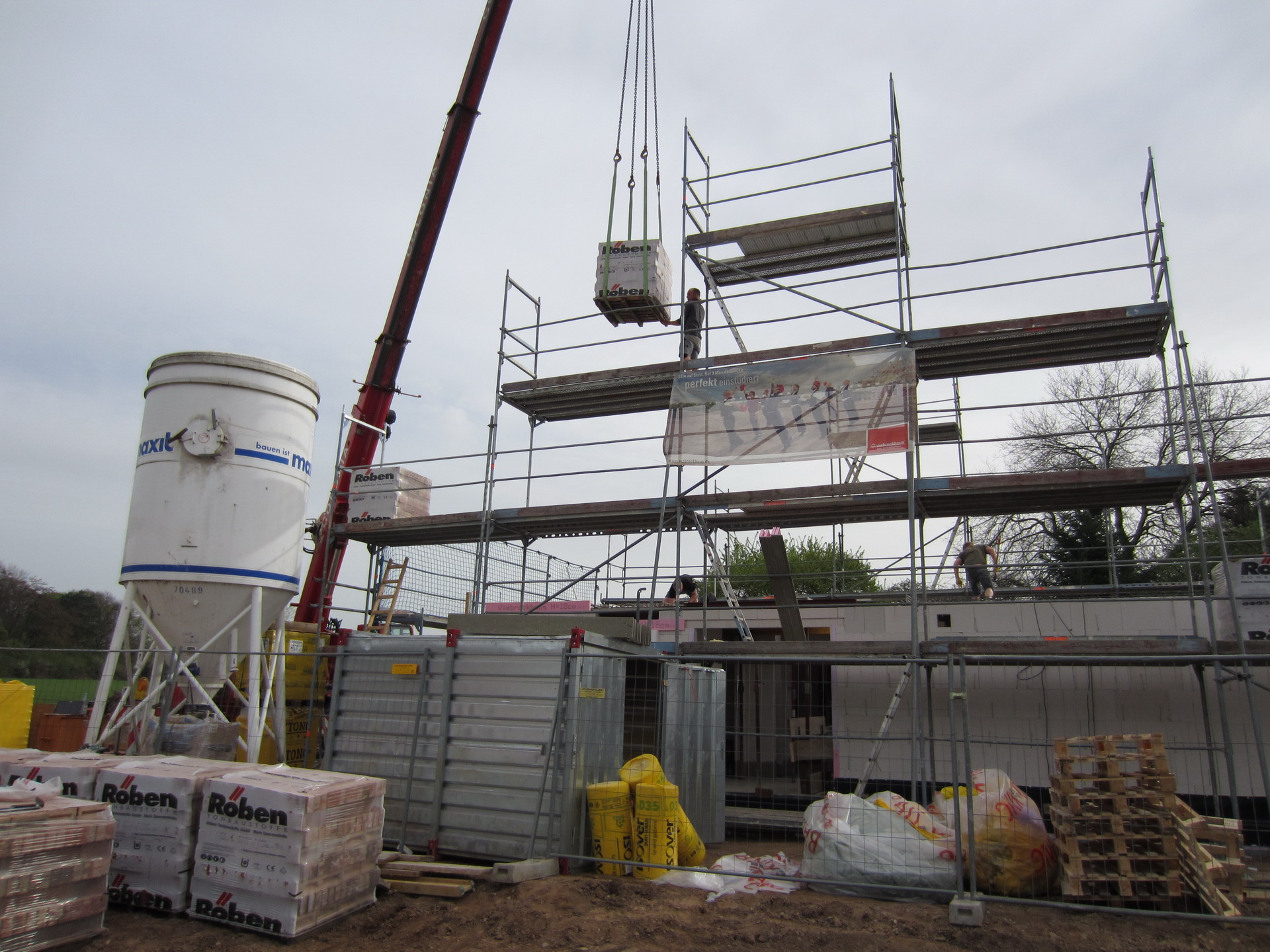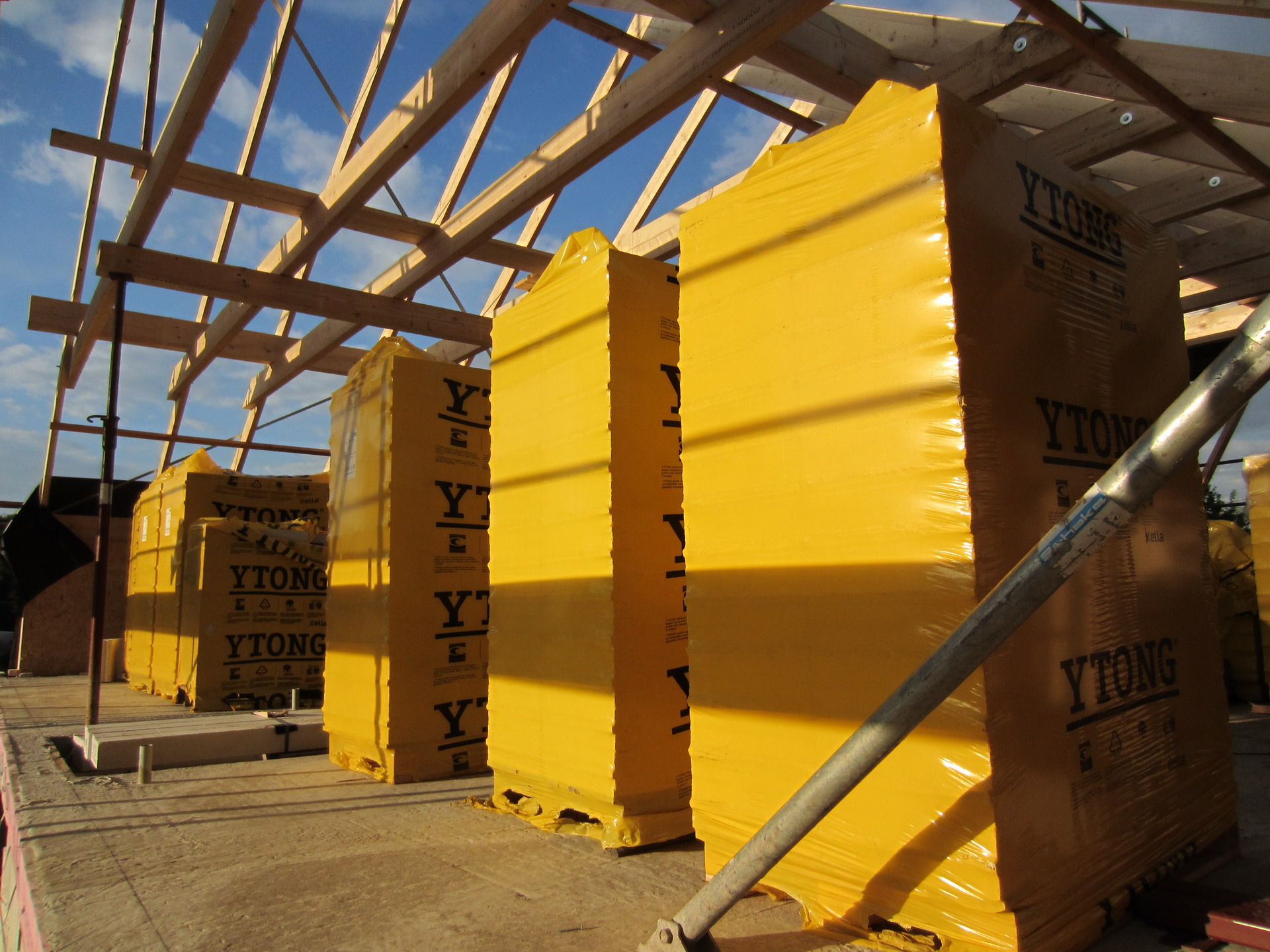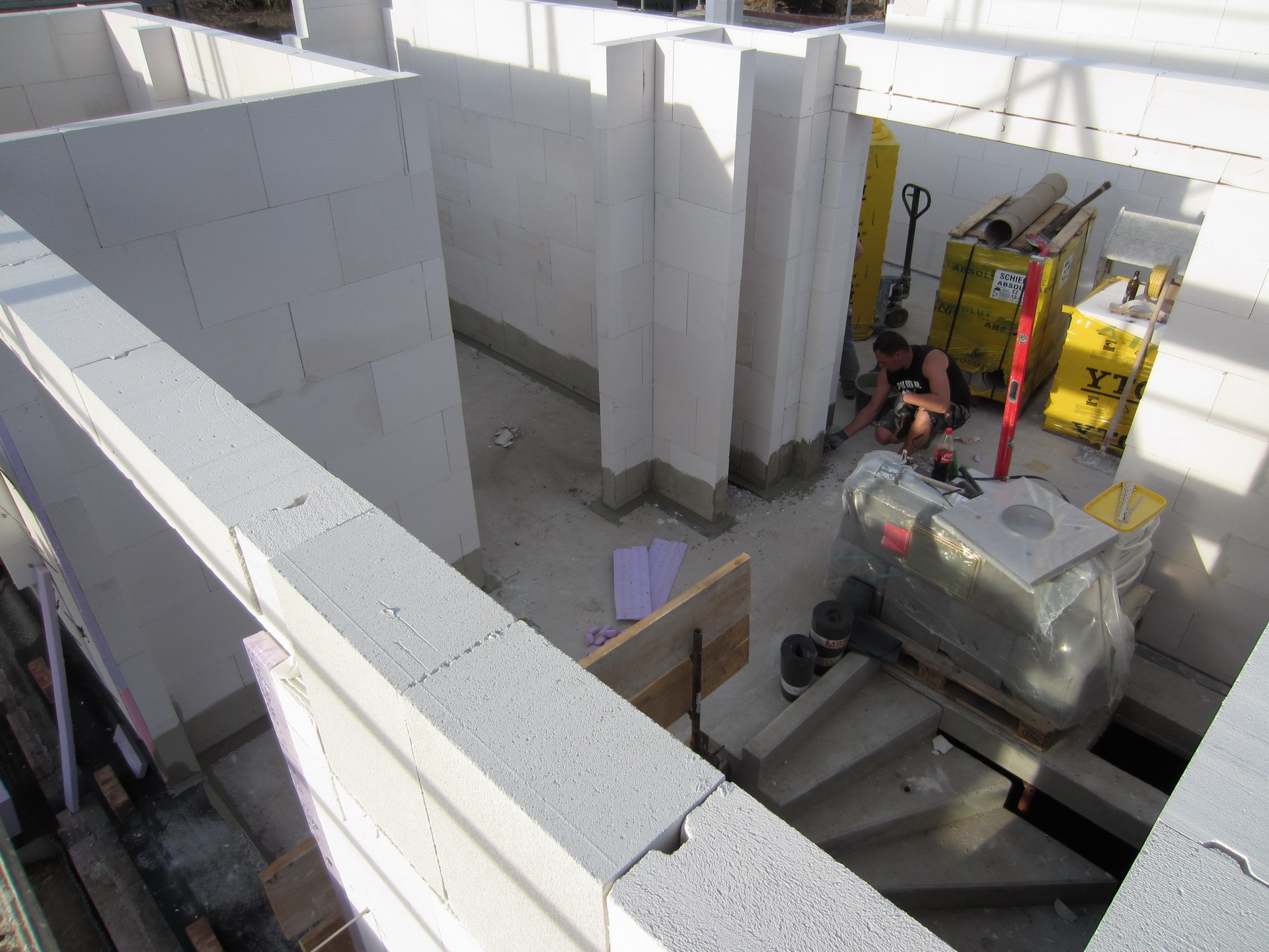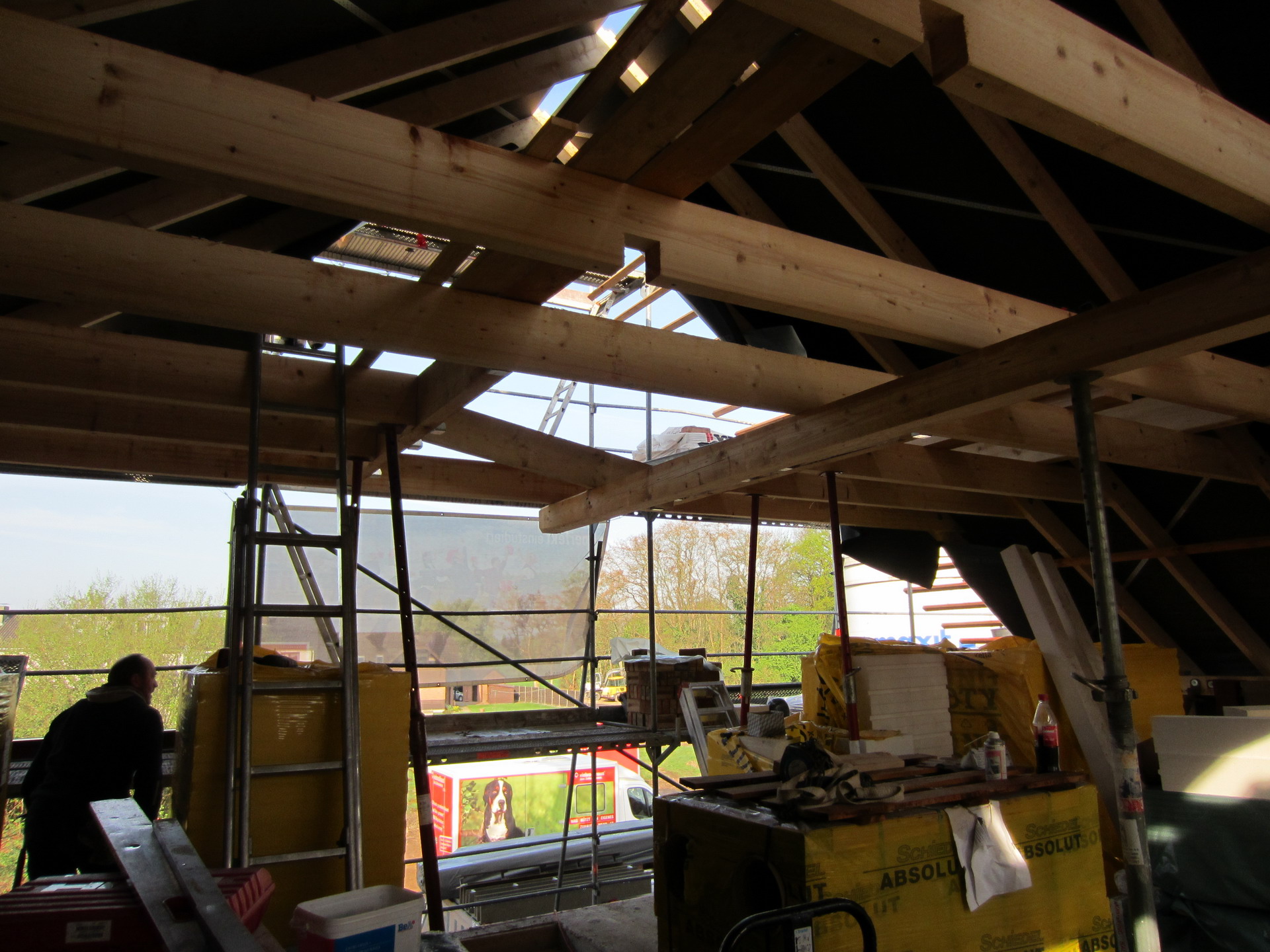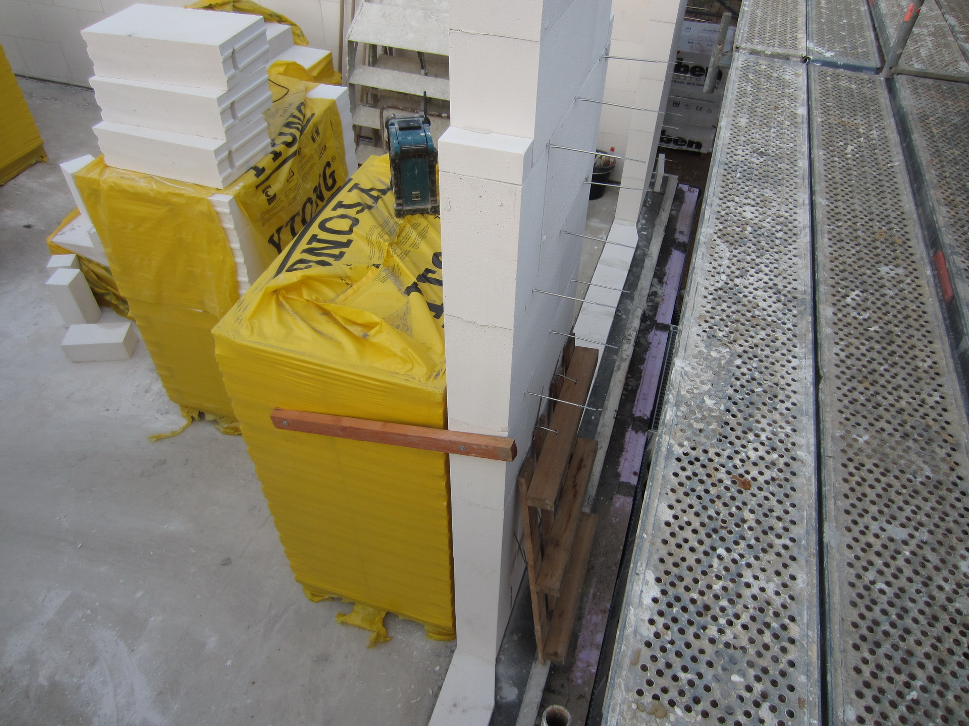 …auf der EG-Decke steht längst das Material für die OG-Wände, die Dach- und Drempel-Innenverkleidung und der Schornstein ab hier