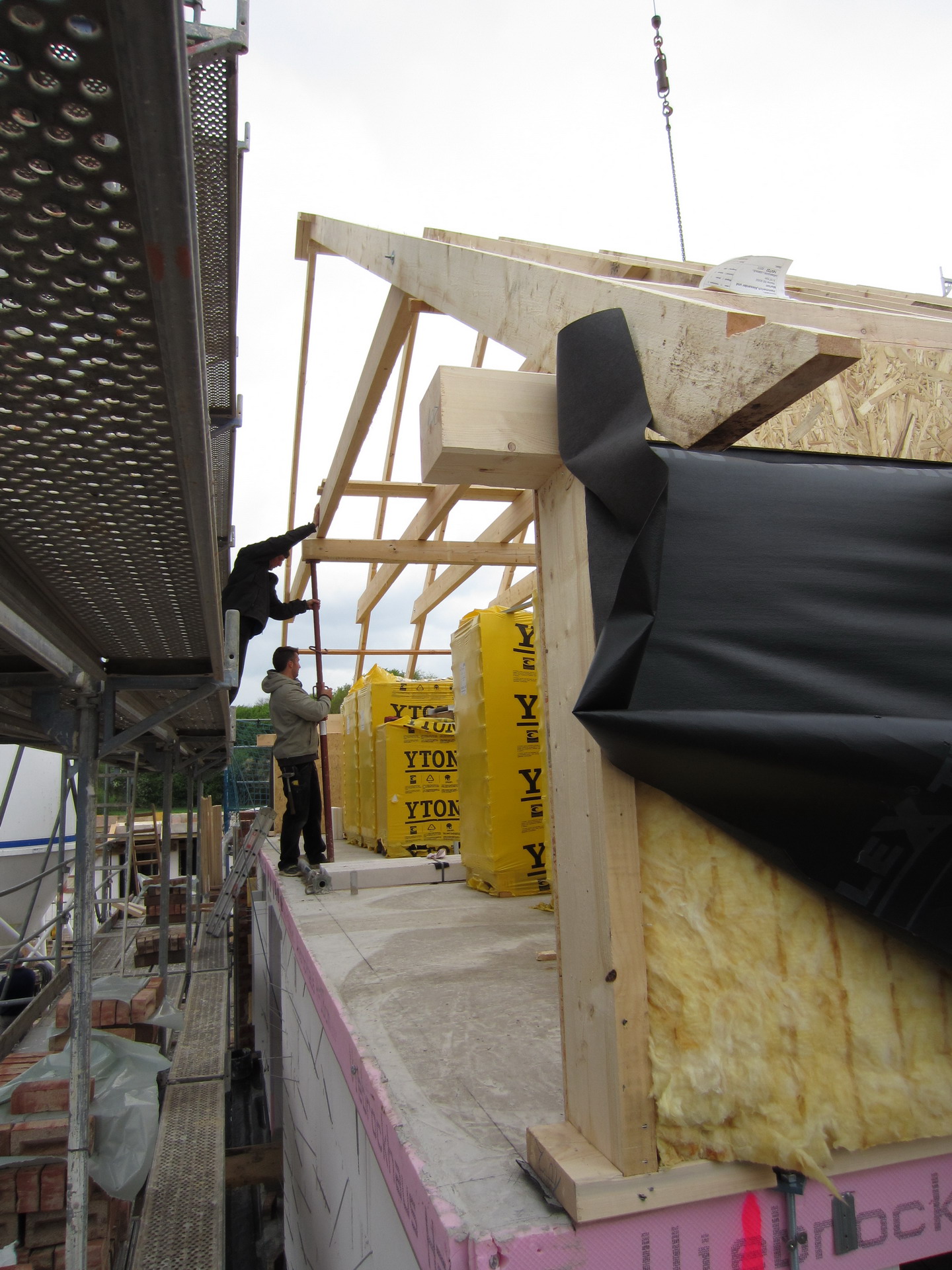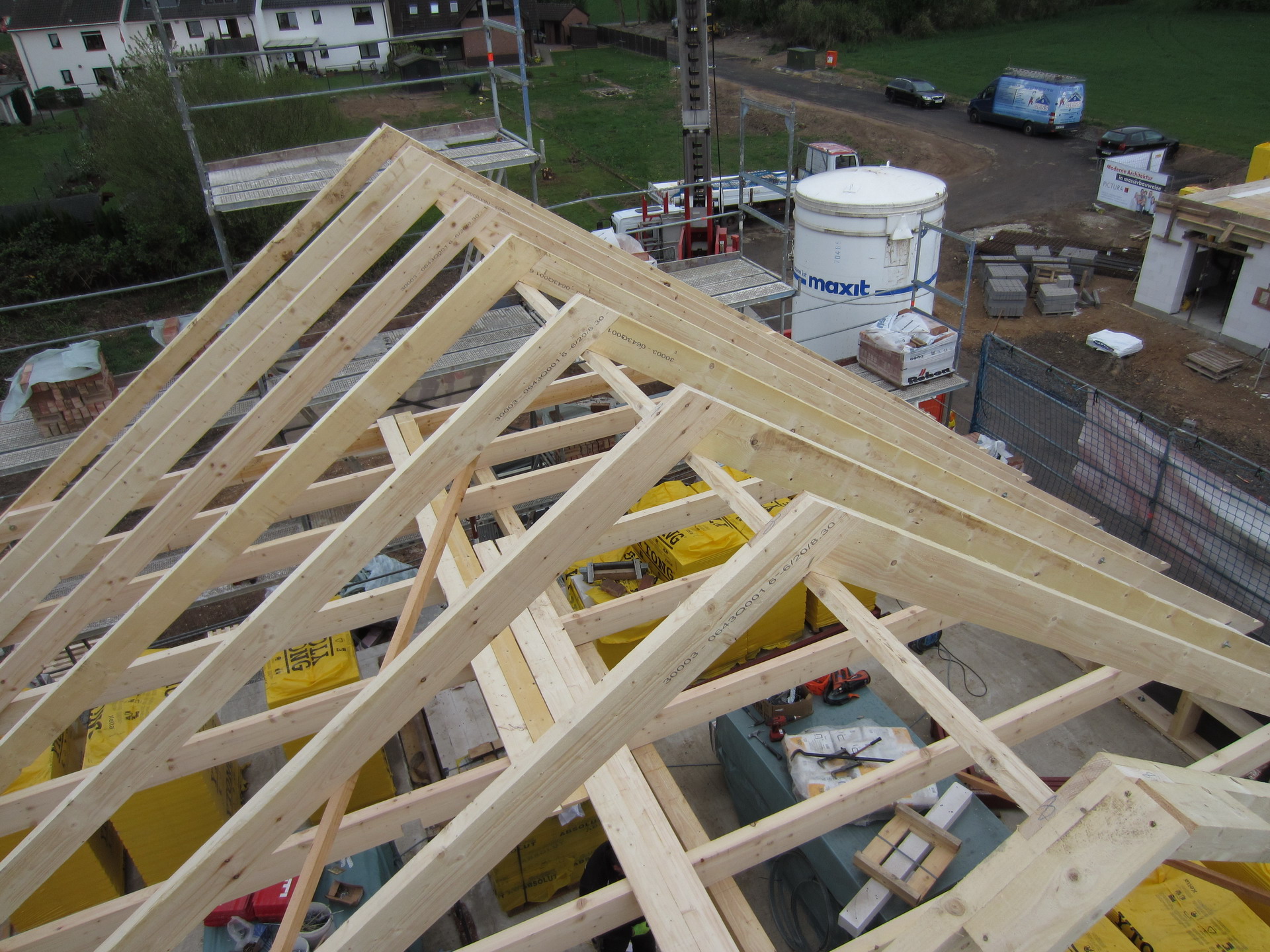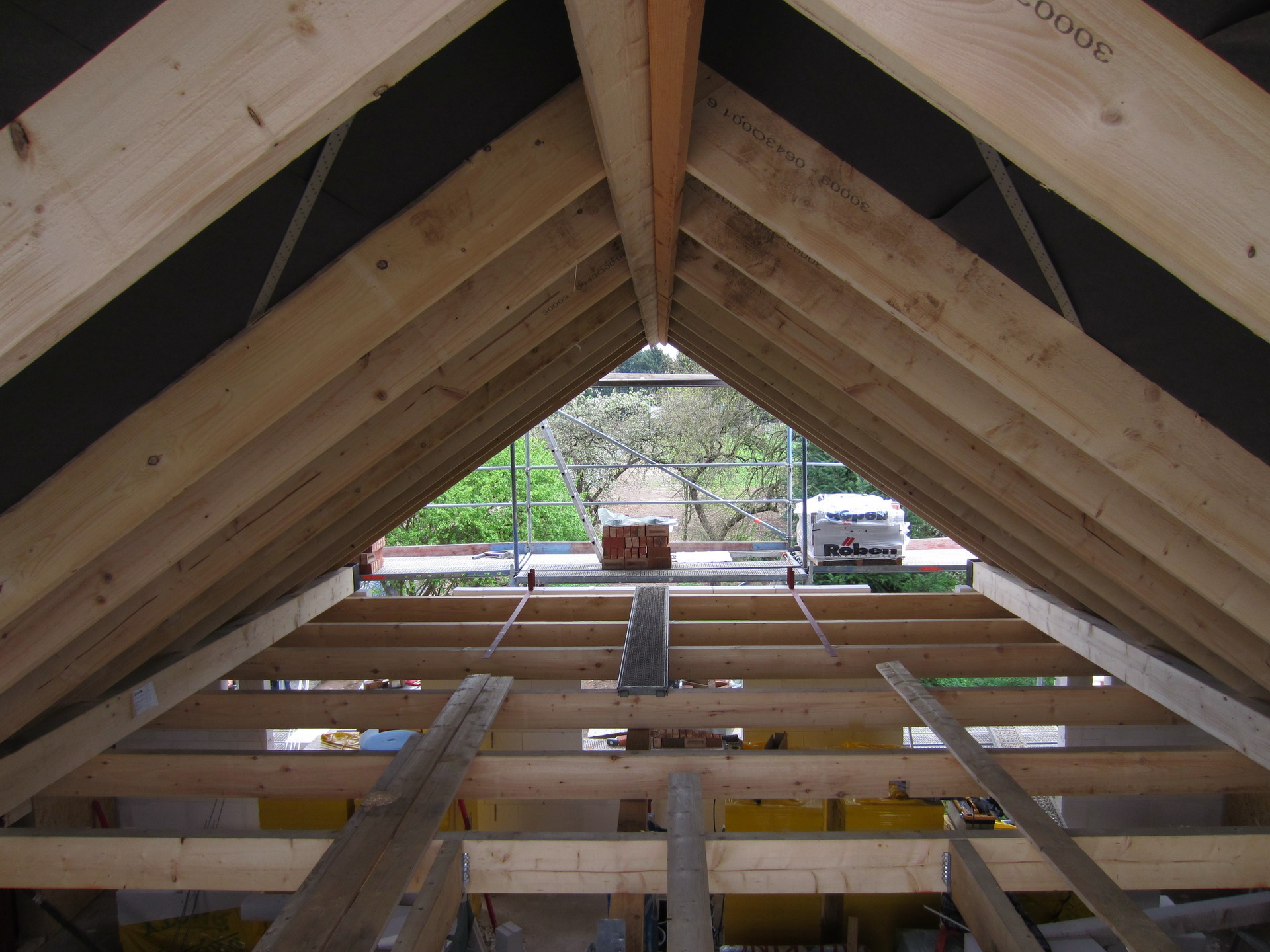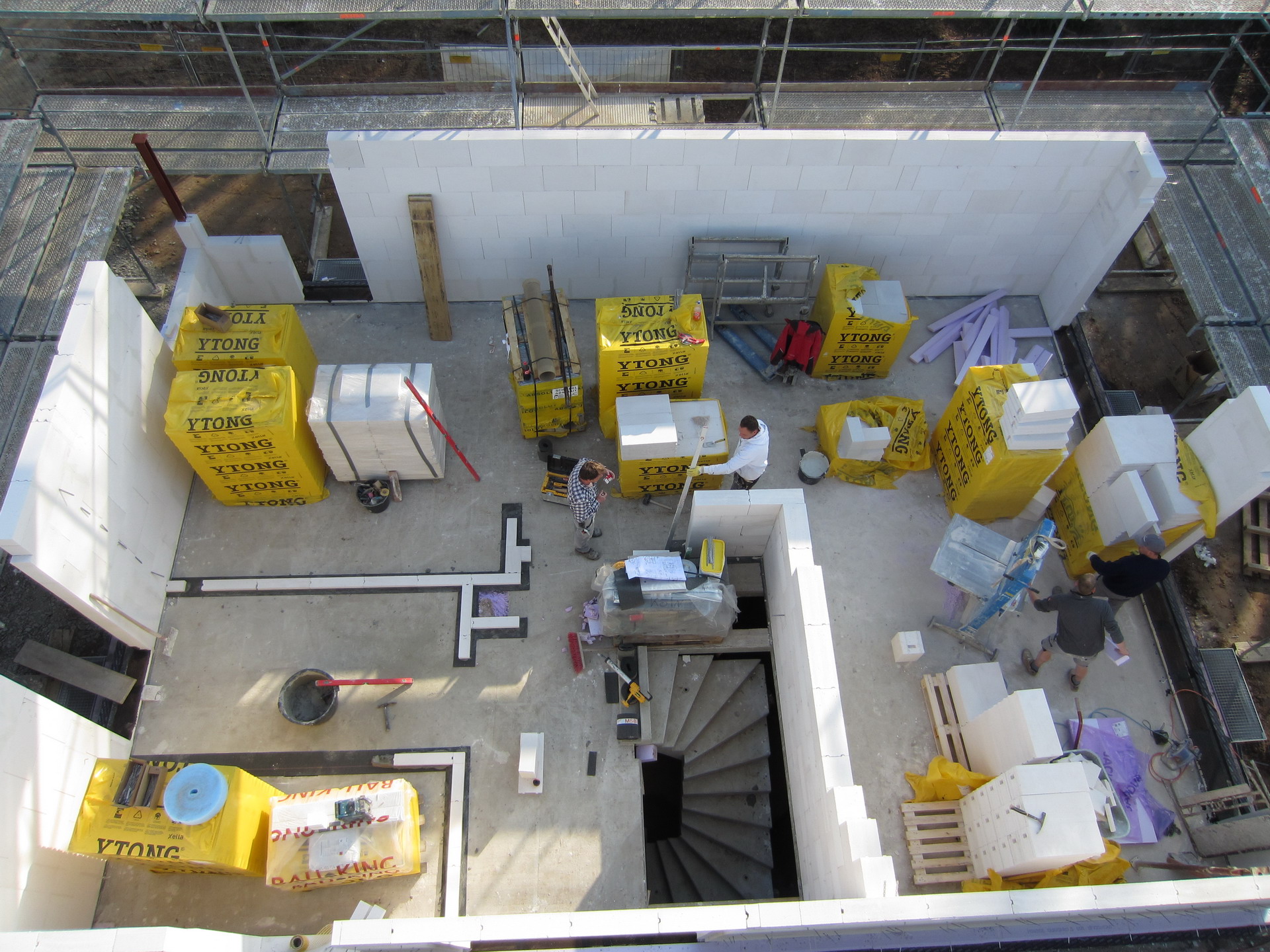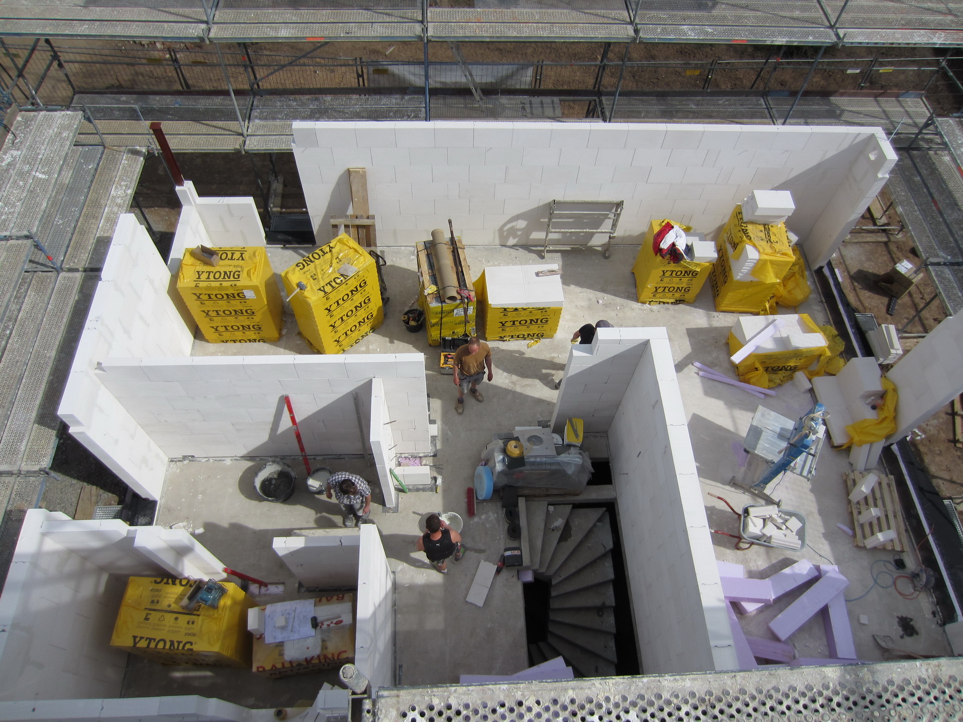 …auf der EG-Decke steht längst das Material für die OG-Wände, die Dach- und Drempel-Innenverkleidung und der Schornstein ab hier