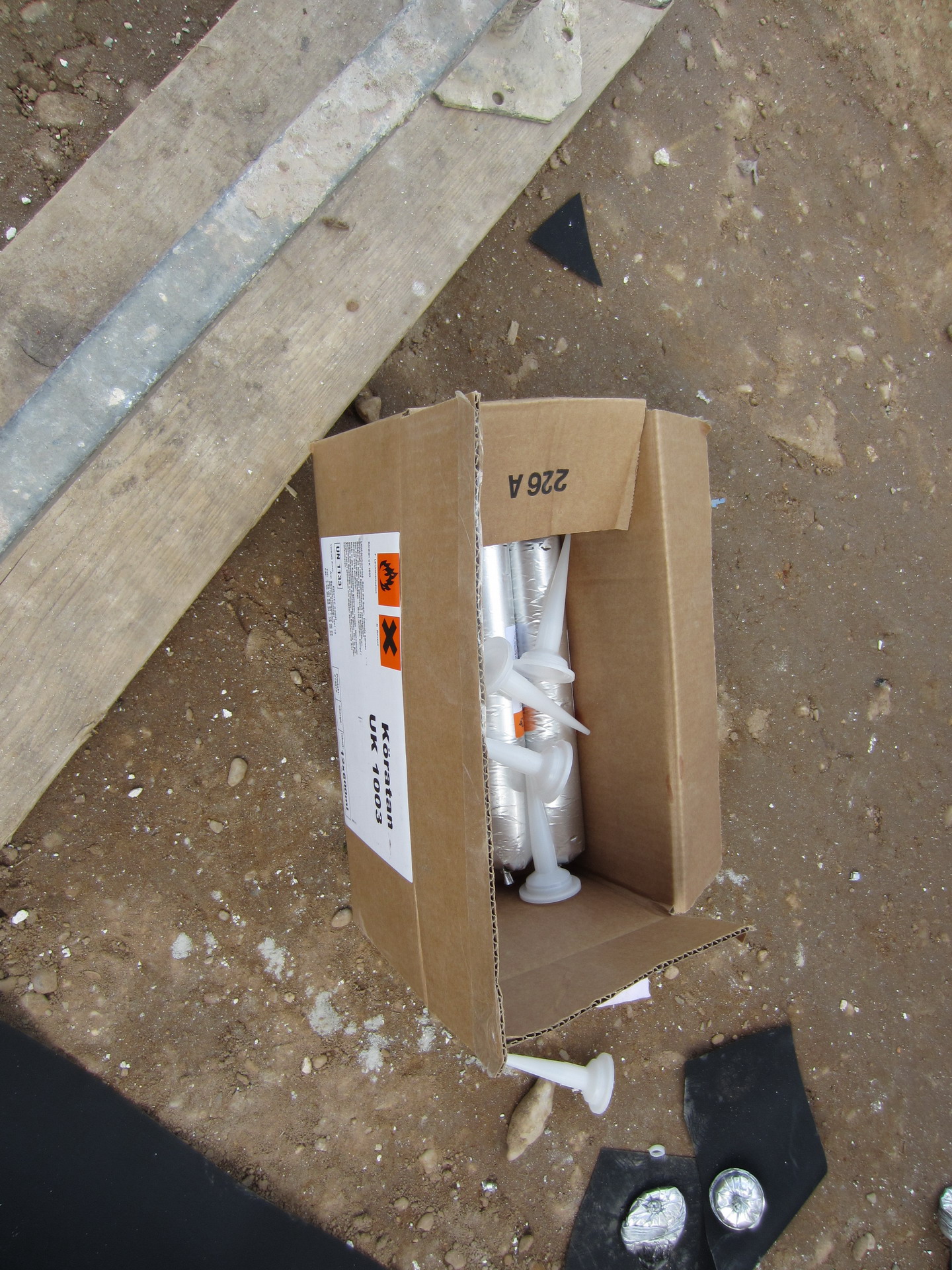 …Versteifungswinkel angebracht, es stützen zunächst noch Schrägstützen
