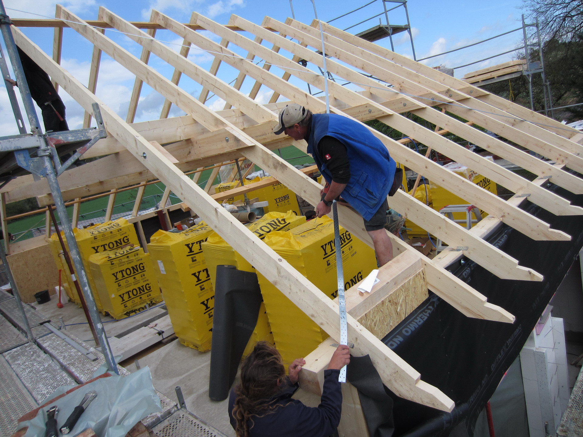 …Verkehrsweiss für die Bauherreneigenleistung – Streichen der Stirn-, Ortgang- und Traufbretter