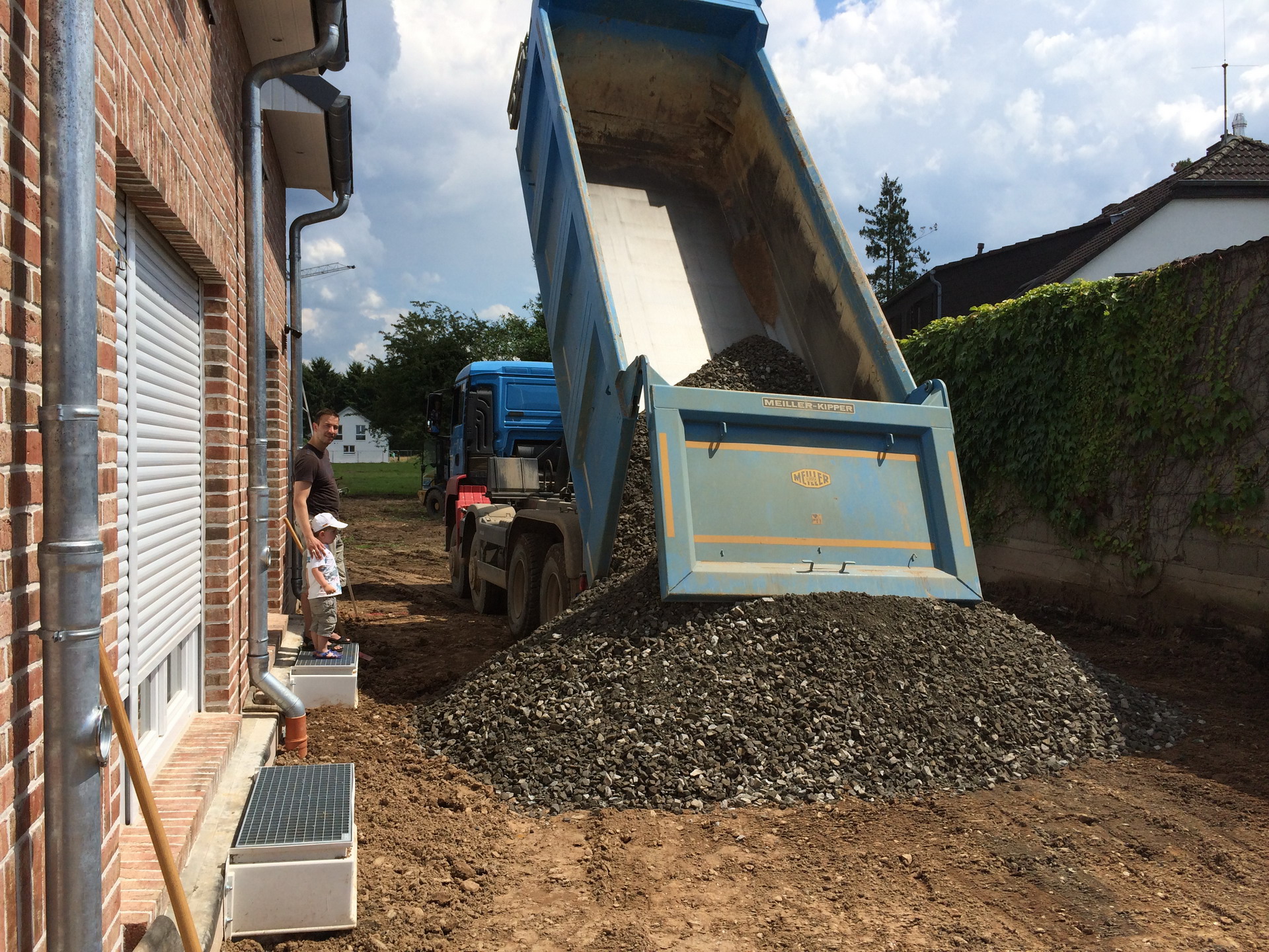 …am Ende von Tag 31 sperre ich -wie jeden Abend- die Baustelle ab, da rücken noch 2 nette Herren an und wollen bei strömendem Regen aufs Dach die PV-Anlage anbauen – von mir aus 😉