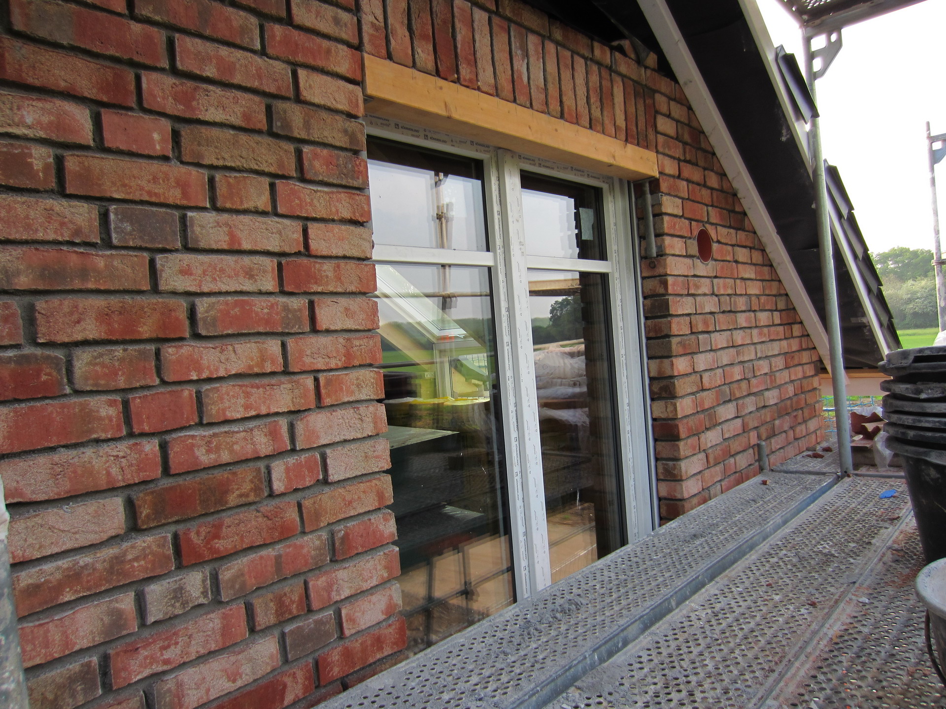 …die Herausforderung, zwischen Haustürschwelle und Einfahrt liegen Abdichtungen und 20cm Kellerdämmung in verschiedensten Höhen, welche es auszuklinken gilt